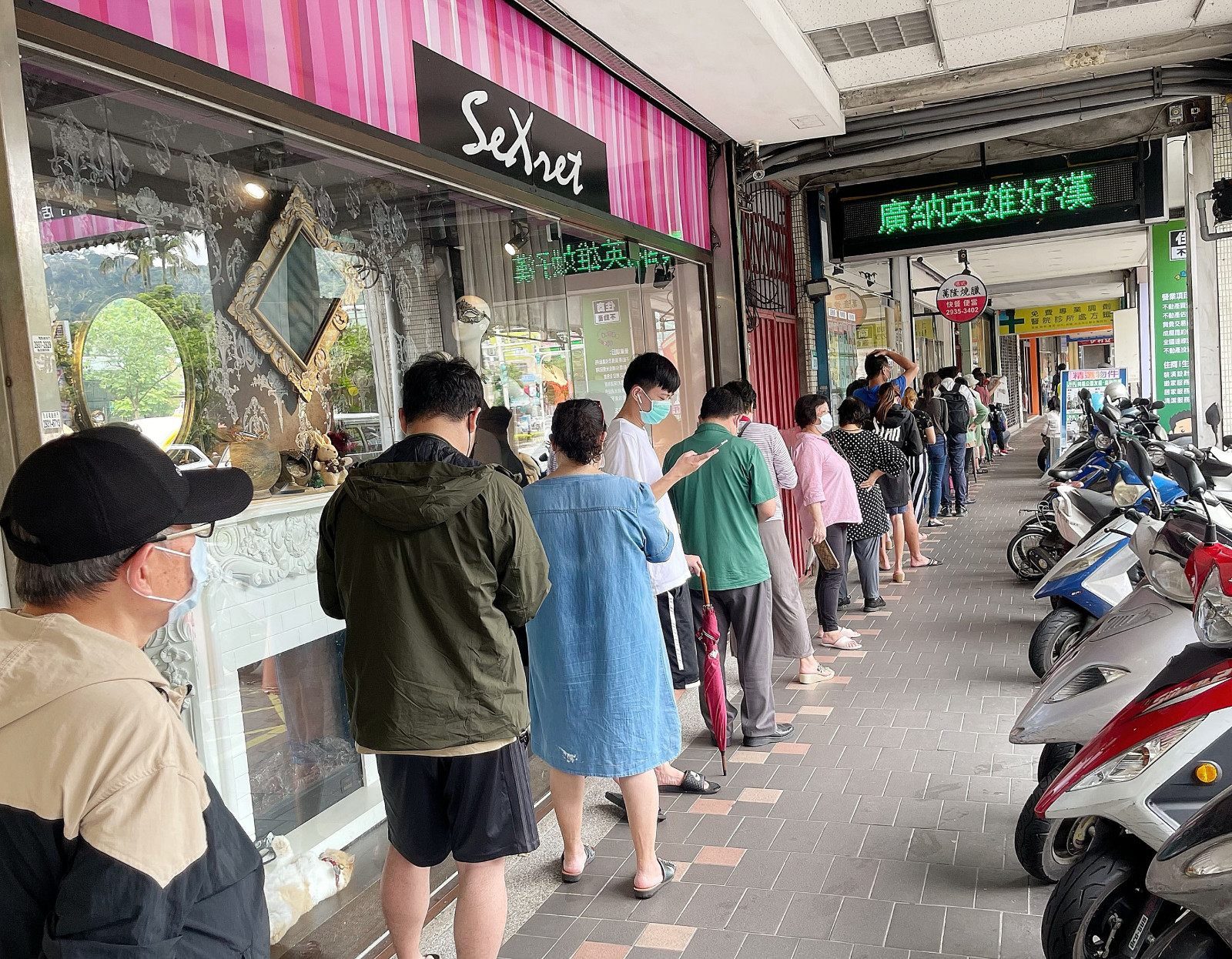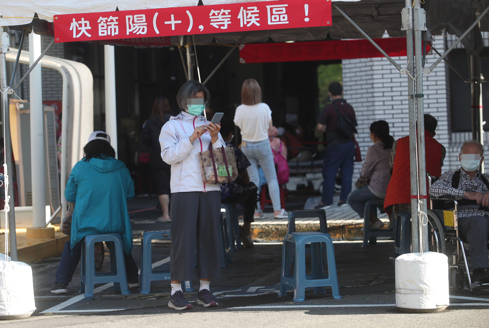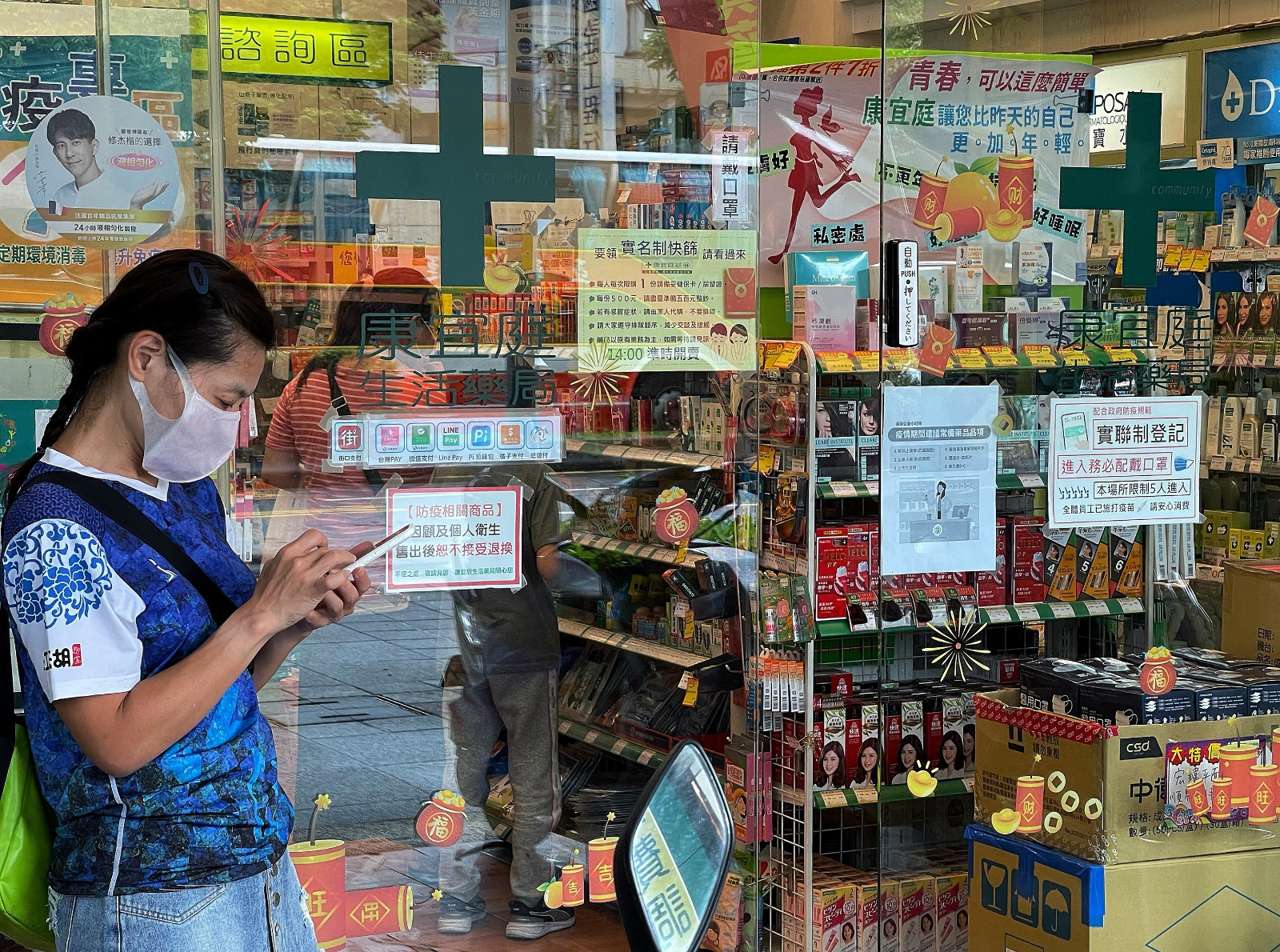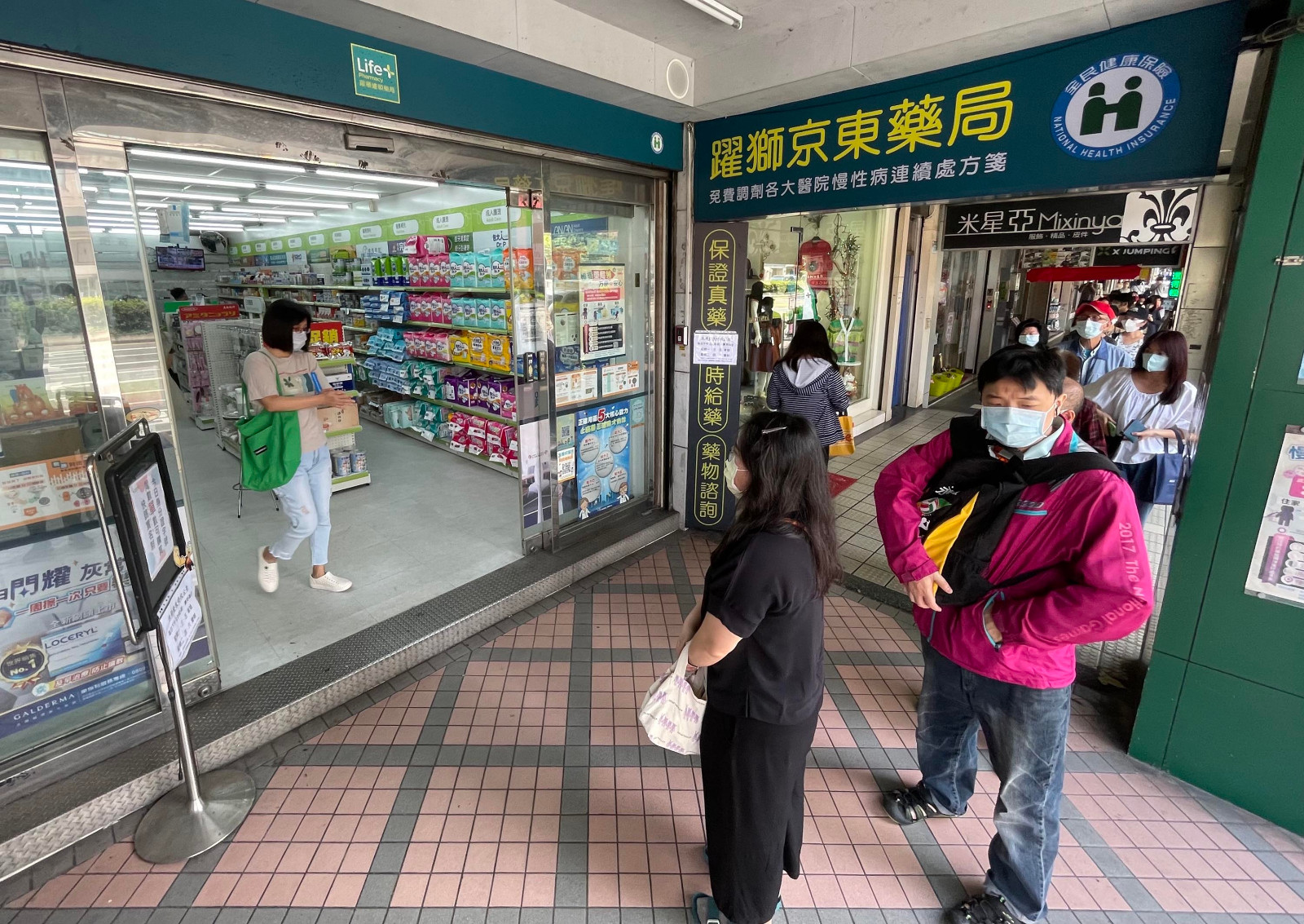 本土疫情升溫,快篩試劑一劑難求!连日来,不少島內民眾在藥店外排隊購買家用快篩劑,甚至有民眾直接帶板凳前來排隊購買實名制快篩試劑。