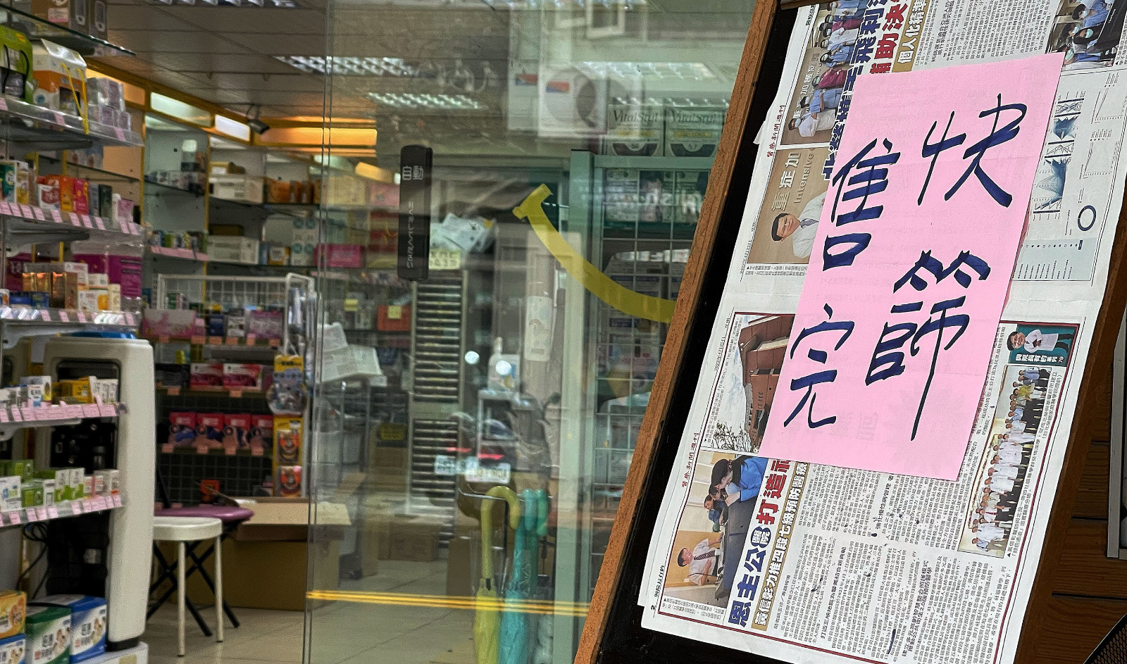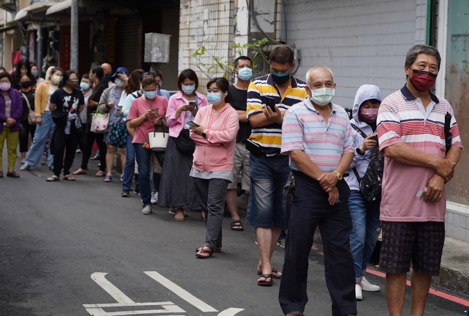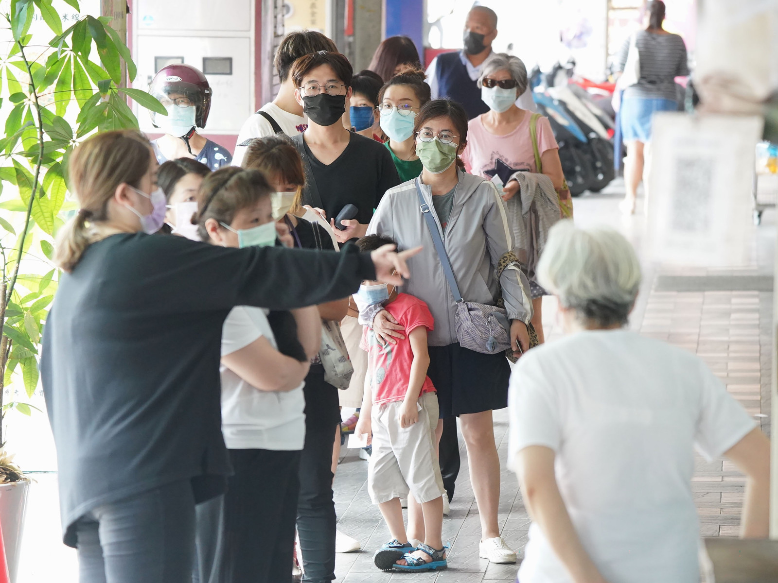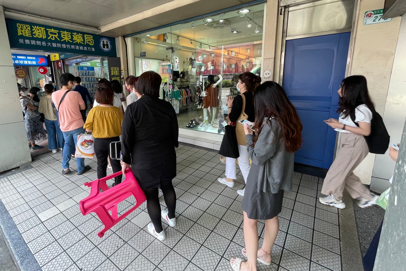 本土疫情升溫,快篩試劑一劑難求!连日来,不少島內民眾在藥店外排隊購買家用快篩劑,甚至有民眾直接帶板凳前來排隊購買實名制快篩試劑。