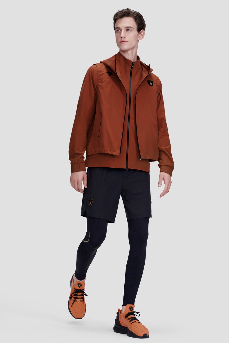 「F360跑步外套」的新配色ORANGE OXIDE低調中帶點不平凡,配色源自跑車的經典色調,巧妙平衡超跑的高調感與簡約舒適感,並男女適穿。