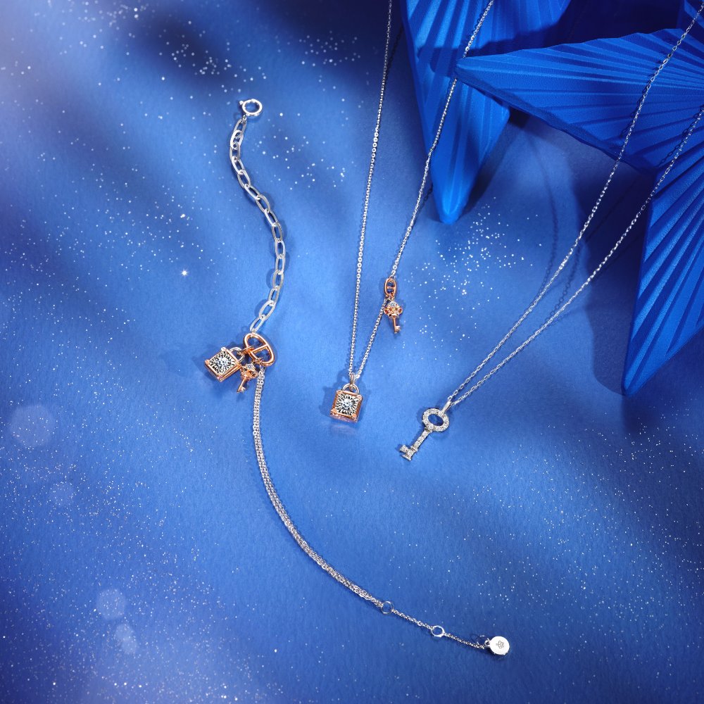 英皇珠寶在佳節推出四大鑽飾系列,包括「Dewy晨露系列」、「Flare風姿綽約系列」、「Love Adventure戀愛旅程系列」及「Timeless Tales矢志不渝系列」,備有多款18K白金(玫瑰金)鑽石頸鏈、手鏈、耳環以及戒指款式,適合不同風格、氣質的女性佩戴。筆者推介以掛鎖及鎖匙作為設計概念的「Love Adventure戀愛旅程系列」,象徵愛侶之間需互相將心扉打開,共同開啟幸福之旅,而鎖心中央的璀璨美鑽永恆守護兩人的戀愛。