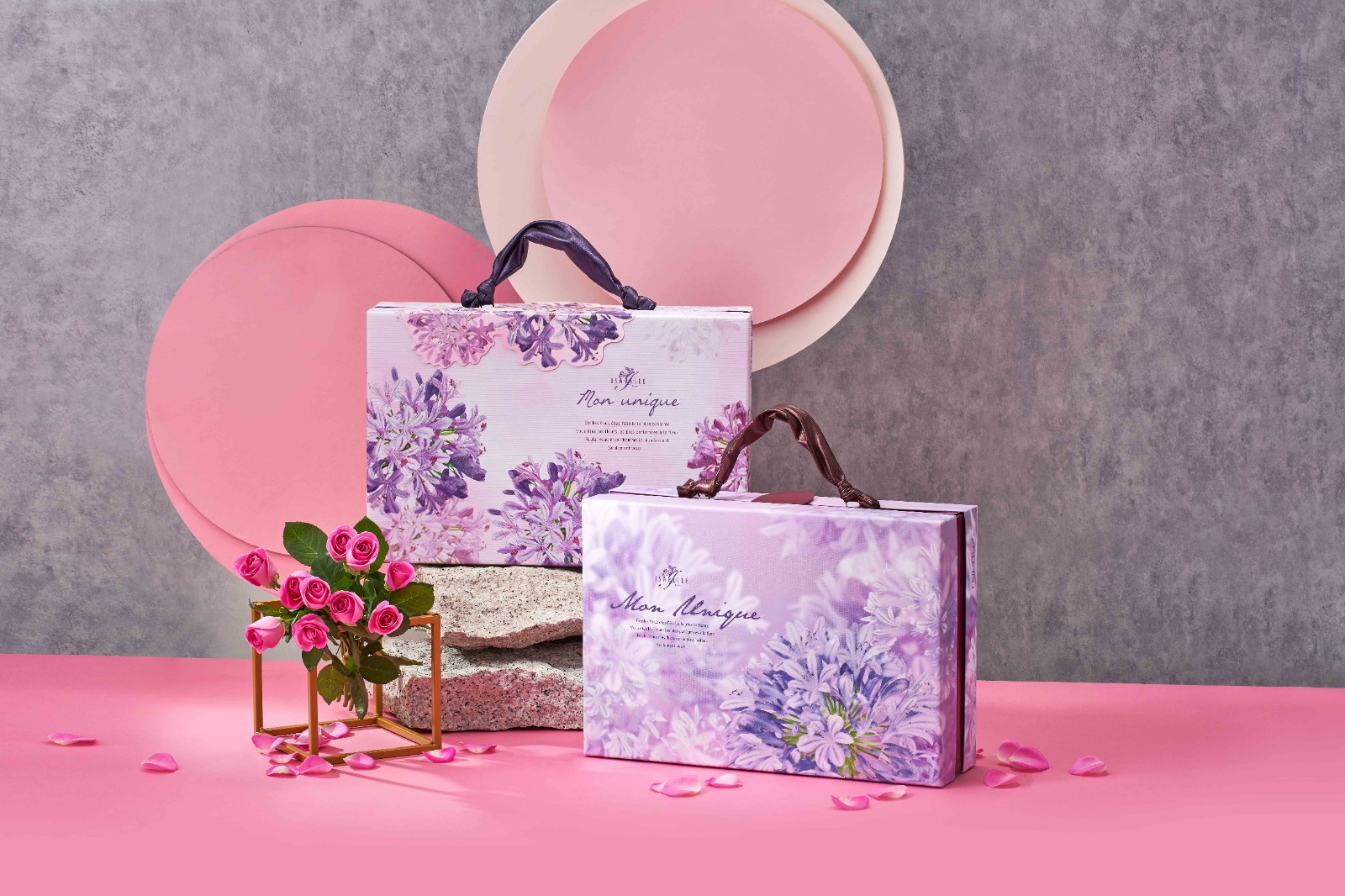 冬日少不了甜蜜、精緻的曲奇,台灣新鮮直送到港的人氣法式曲奇甜點品牌 ISABELLE,以宮廷級宴會美點糅合藝術感創意,推出時尚夢幻的禮盒包裝。筆者推介淡紫色手提盒「薇愛倪Violette」,以精緻手提盒提起豐盛的雙層手工曲奇,內裏包含人氣焦糖杏仁船及白蘭地葡萄夾心等60件曲奇甜點。而高貴大方的阿薩姆茶戀人曲奇同樣很吸睛,曲奇以純正阿薩姆紅茶烘焙,濃郁的餅乾茶香配以香滑的白朱古力夾心,香醇而甜蜜。