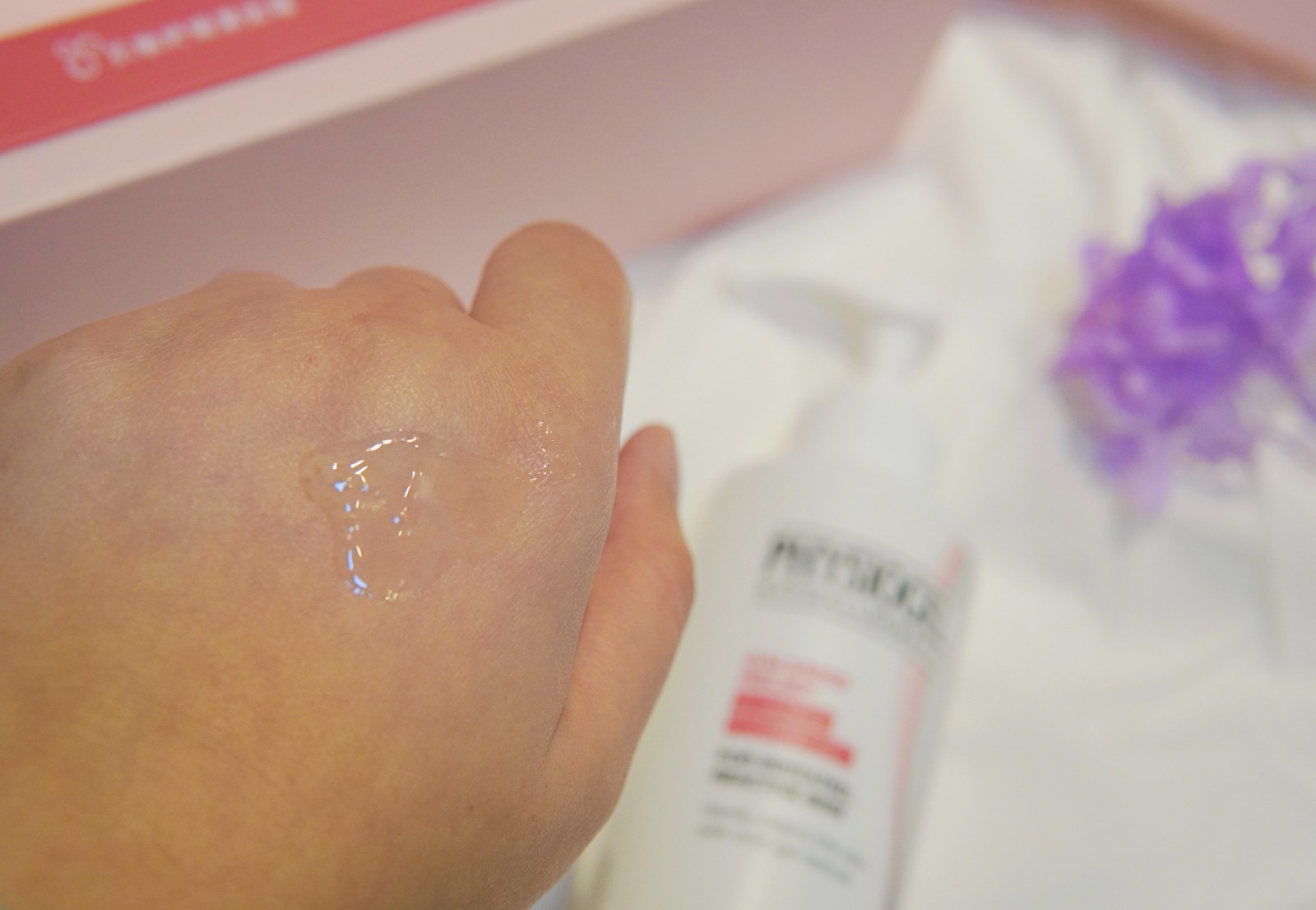 潔面霜呈透明啫喱狀,能揉出綿密泡沫令潔膚過程舒適而不繃緊。