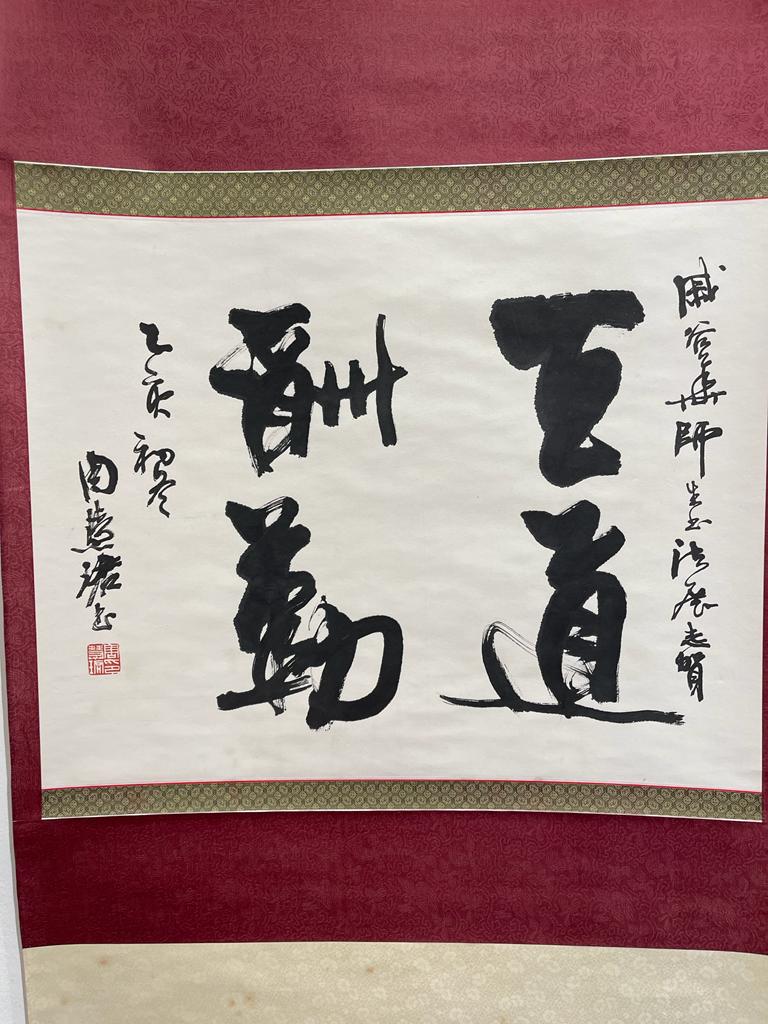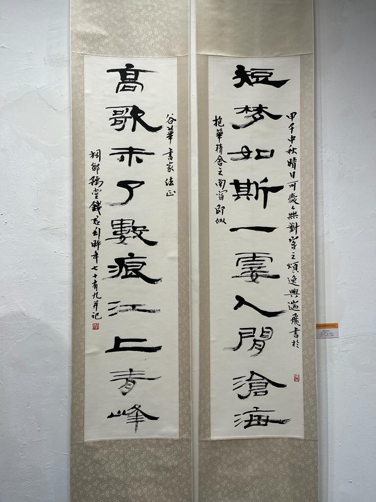 展覽展示了戚谷華的老師——錢君匋的作品《短夢如斯 一霎人間滄海 高歌未了 數痕江上青峰》。