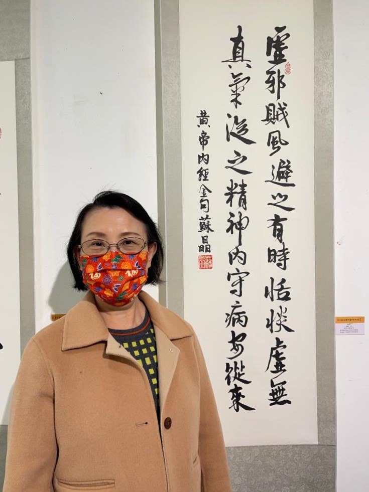 戚谷華學生蘇晶及其作品《黃帝內經金句》。