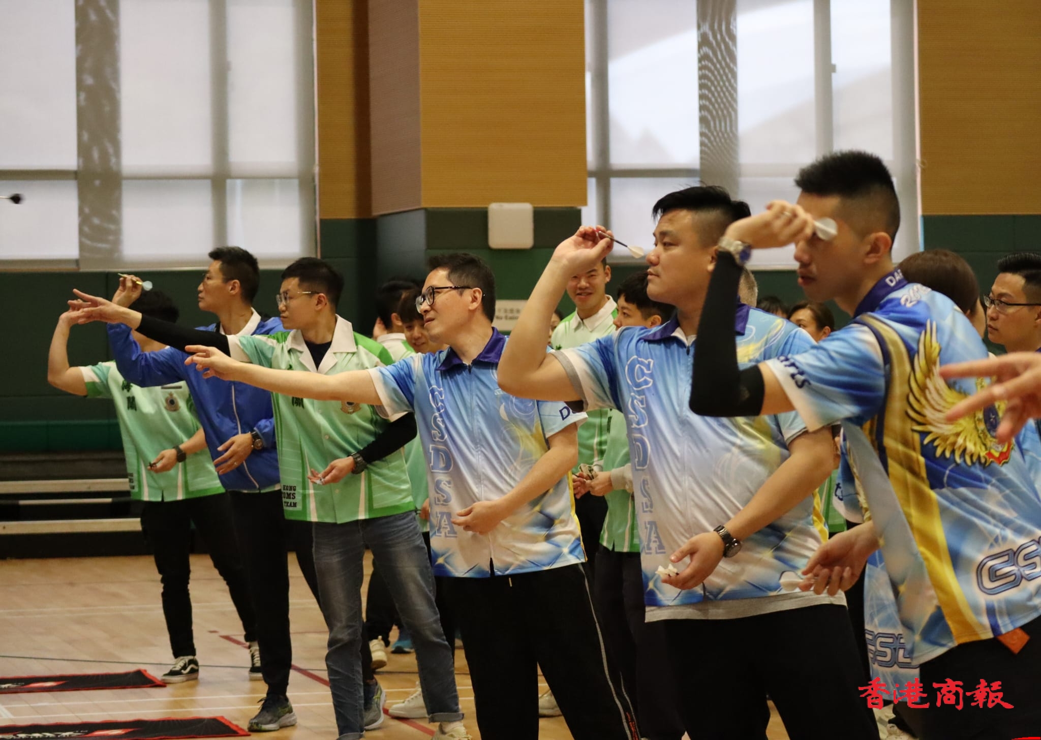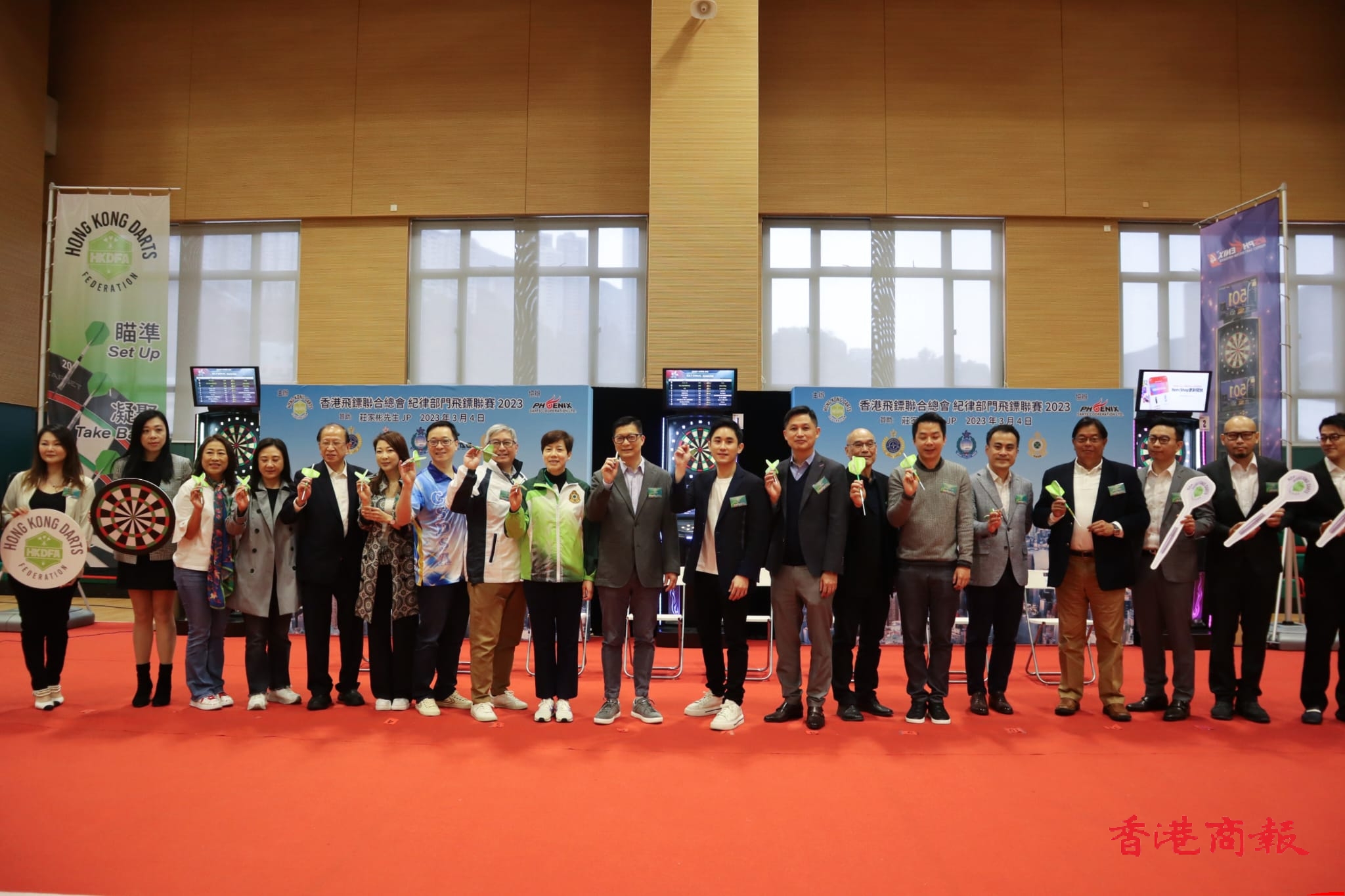 香港飛鏢聯合總會今日(4日)起舉辦首個紀律部門飛鏢聯賽,並於紀律部隊人員體育及康樂會舉行啟動禮及首站比賽,由保安局局長鄧炳強、入境處處長區嘉宏、海關關長何珮珊等主禮。