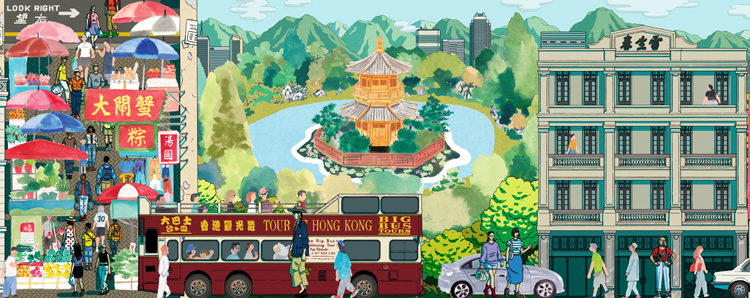 麥東記Don Mak聯乘澳洲插畫家Ilya Milstein以插畫創作一幅逾12米的畫,名為《蛋撻》,猶如「迷你港版清明上河圖」。