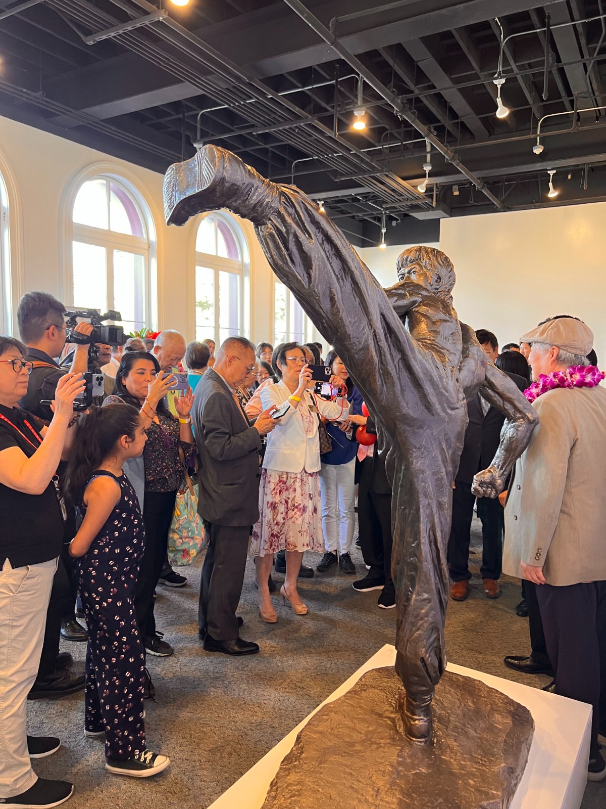 是次個展「地靈人傑」展示多件朱達誠創作、具影響力的人物雕塑,包括李小龍、孫中山、邵逸夫等,還有朱氏獨創的「草書書法」雕塑,同時亦有多件從未公開展出的雕塑。為紀念李小龍逝世50周年,展覽展示真人大小(稿5呎8吋)的李小龍雕像,展示李小龍的「截拳道」側踢姿勢,展覽結束後將捐贈予李小龍基金會。展覽將於7月28日移師加拿大的大多倫多中華文化中心展出至8月8日。展覽期間,朱達誠會同時舉辦藝術家創作分享會、工作坊和現場示範等活動。讓海外華人通過展覽,了解中華藝術文化。 (記者:Janice 圖片:藝術家提供)