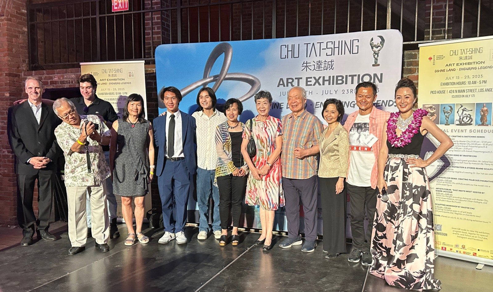 朱達誠(右四)個展「地靈人傑」首站於美國洛杉磯華美博物館展出。