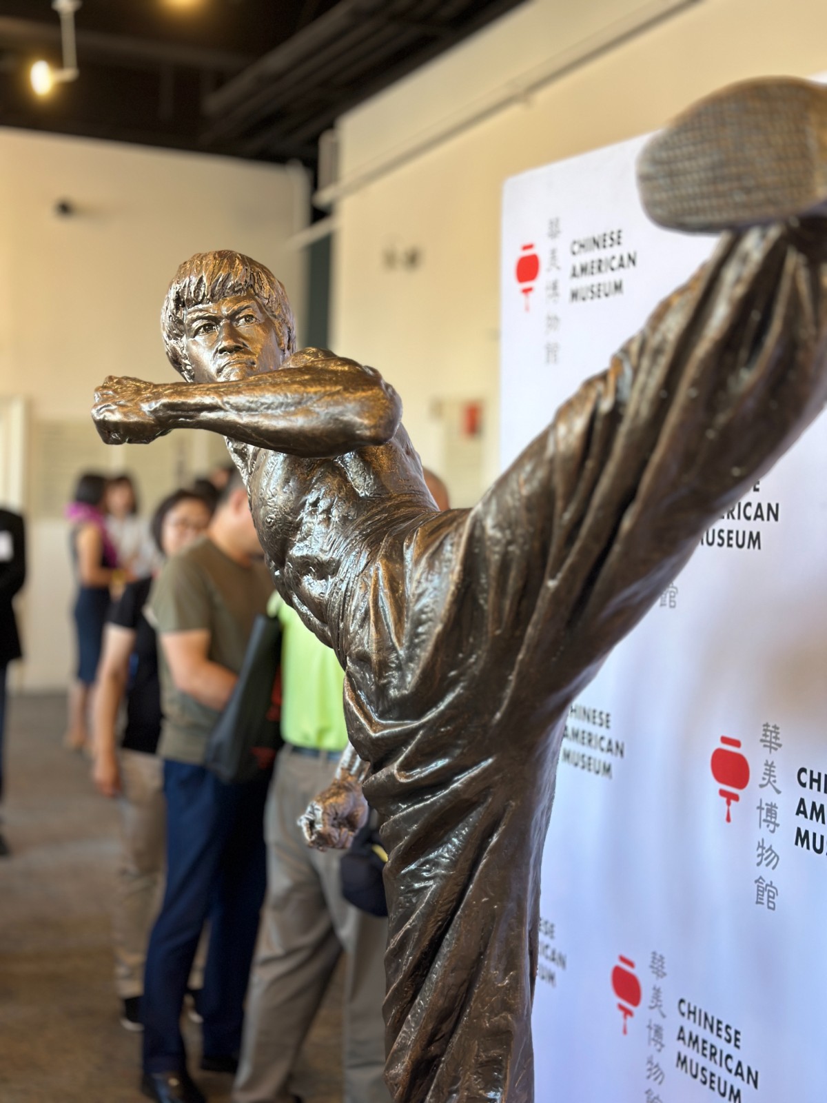 展場內真人大小的李小龍側踢雕像吸引不少人拍照。