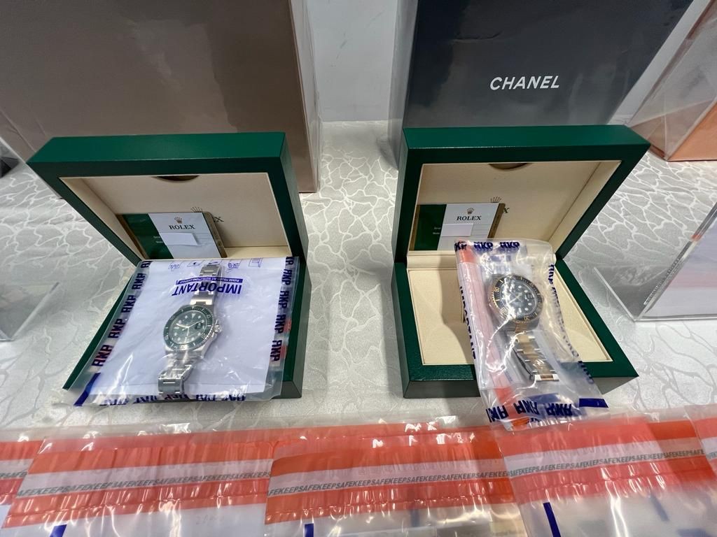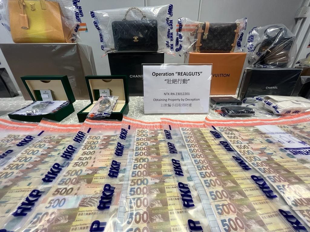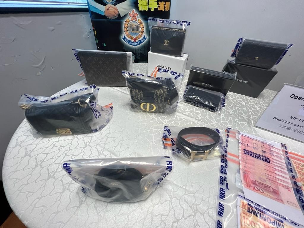 秀茂坪重案組聯同情報組展開埋伏行動,於前日(4日)觀察到男主腦在青衣區接收一個被騙去的名牌手袋,帶回儲存倉庫。探員見時機成熟,隨即展開突擊行動,並成功搗破該倉庫,拘捕兩名31歲和30歲集團主腦。其後探員於單位內尋回大量贓物,包括19個名牌手袋及2隻名牌手表,同時在單位內搜出與案有關物品,包括22萬元現金、3本支票簿、1本帳簿、8部手機及被捕人懷疑交收時身穿的衣物。