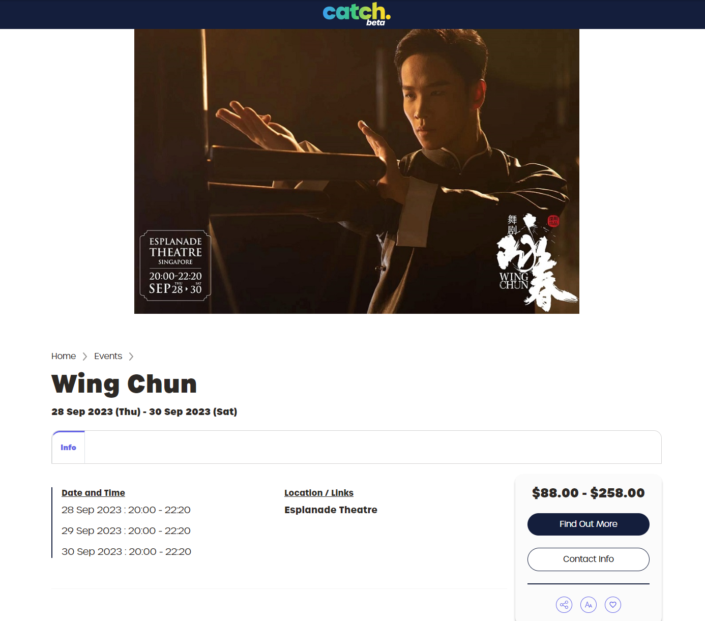 新加坡票務網站Sistic上《詠春》的購票頁面