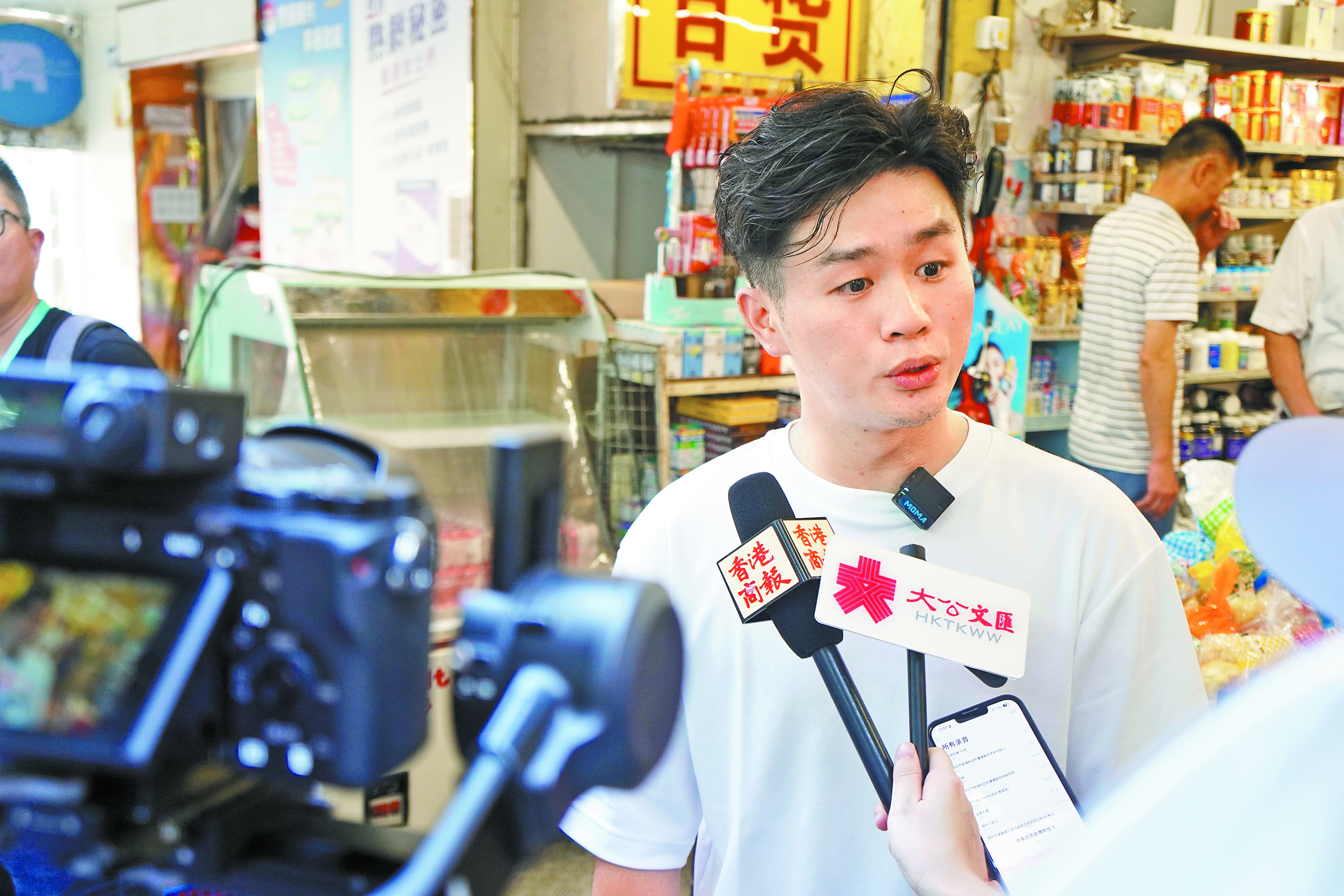 港人父子彭希棉與彭嘉誠,在中英街經營着廖記中西藥行、實惠百貨等商舖。廖記中西藥行自2003年開業,至今已有20個年頭,老闆彭希棉介紹,這裏是中英街的第一家中西藥行。彭嘉誠在其經營的實惠百貨門口接受本報記者採訪時稱,「我們這家店主要賣一些日用品、美妝美容用品,也是中英街最早期的港貨店,主要做街坊生意。」