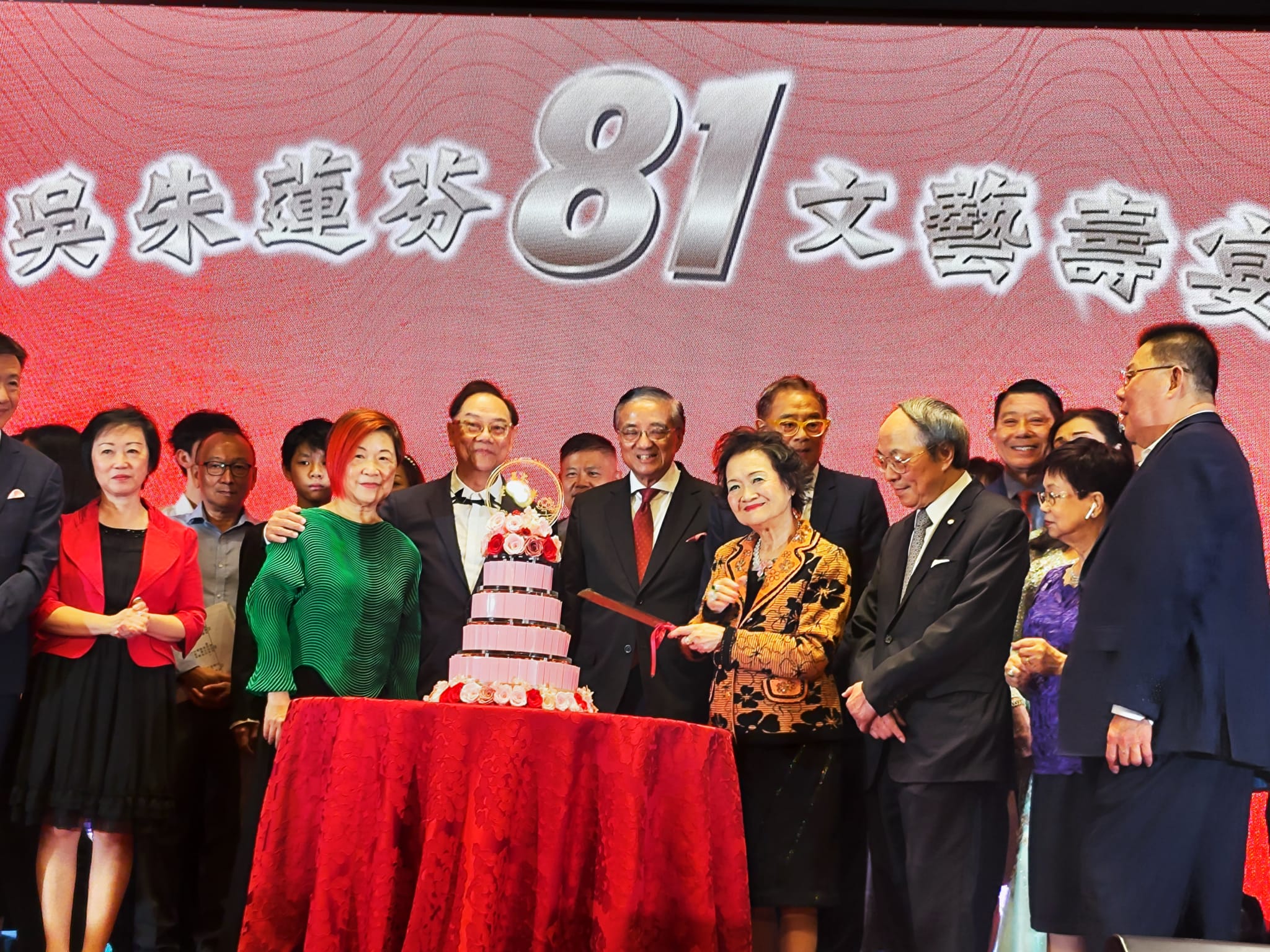 「吳朱蓮芬81文藝壽宴」20日假尖沙咀海旁的麗晶酒店大禮堂舉行,親朋好友與各界嘉賓歡聚一堂,齊唱生日歌,切生日大蛋糕,共祝壽星芬姐「生日快樂,福如東海,壽比南山!」場內衣香鬢影,祝福聲此起彼伏,歡笑滿堂,氣氛熱烈。