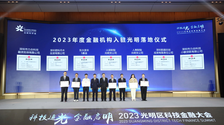 在金融機構入駐光明落地儀式上,隨着15家金融機構代表上台接受營業執照,光明又迎來了一批金融「新夥伴」,將有力推動區域金融業持續健康穩定發展。