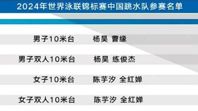多哈世錦賽跳水項目是確定巴黎奧運會參賽席位的最後一站,比賽將會在2024年2月2日到18日之間進行,其中跳水比賽將在2月2日到10日進行。