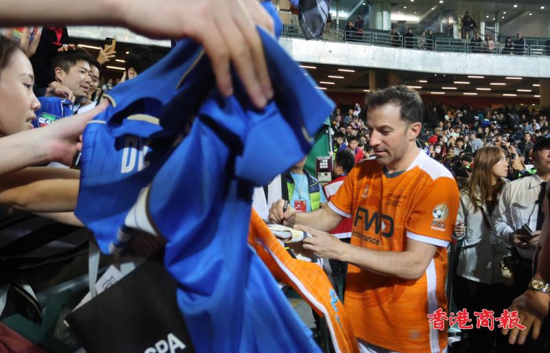 世界明星隊在特首李家超接過冠軍獎盃後,隨即繞場一周,一眾球星不時與球迷揮手,其中列卡度卡華奴還向球迷獻上穿着的球衣,而大衛占士、迪比亞路就是最遲返回更衣室的兩人,他們除為球衣簽名外,還與球迷自拍,盡顯親民一面。(文、圖:志誠)