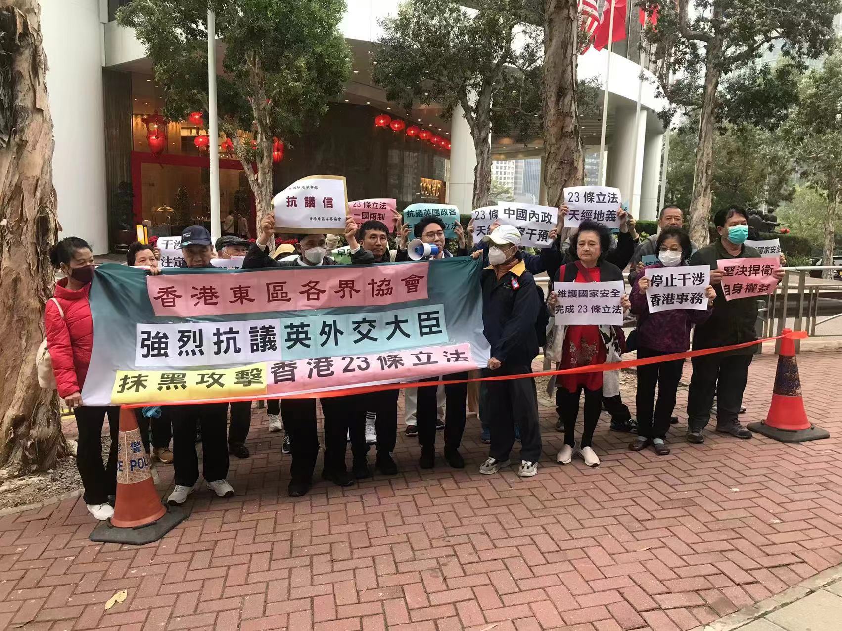 基本法23條立法公眾咨詢昨日結束,英國外交發展大臣卡梅倫發表聲明稱,香港特區政府提出的基本法第23條立法建議違反《中英聯合聲明》規定有關義務,對香港居民行使權利和自由有負面影響,以及在港外國機構有被貼上所謂「外國干預」標籤的風險。今日(29日)下午,多個市民團體到英國駐港領事館抗議,強烈譴責英方妄議、抹黑攻擊基本法23條立法,干預中國內政和香港事務。