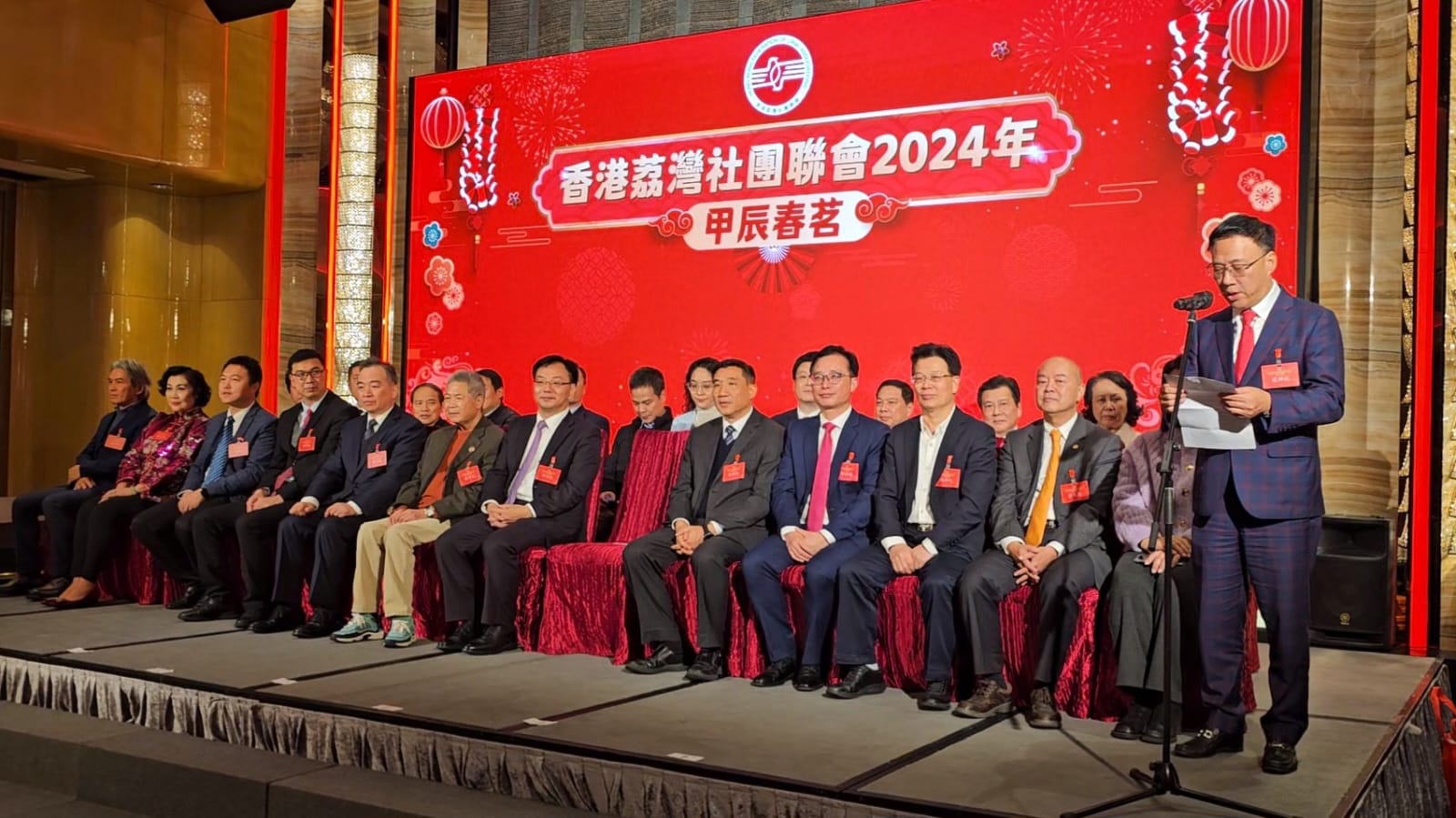 頂圖:香港荔灣社團聯會甲辰春茗,賓主合照。