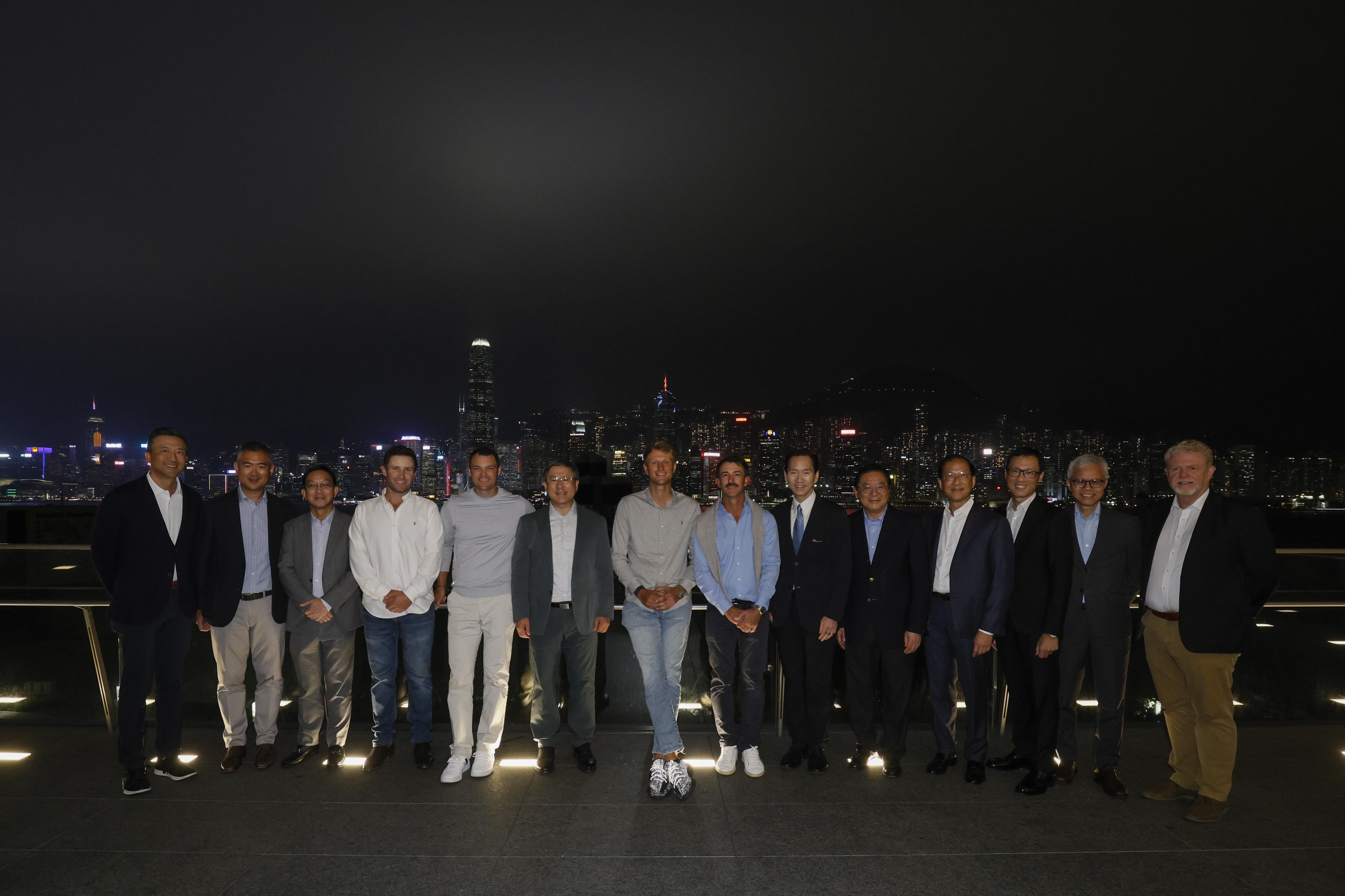 香港哥爾夫球會和一眾LIV Golf代表和球星在維港美景旁,預祝賽事取得圓滿成功。