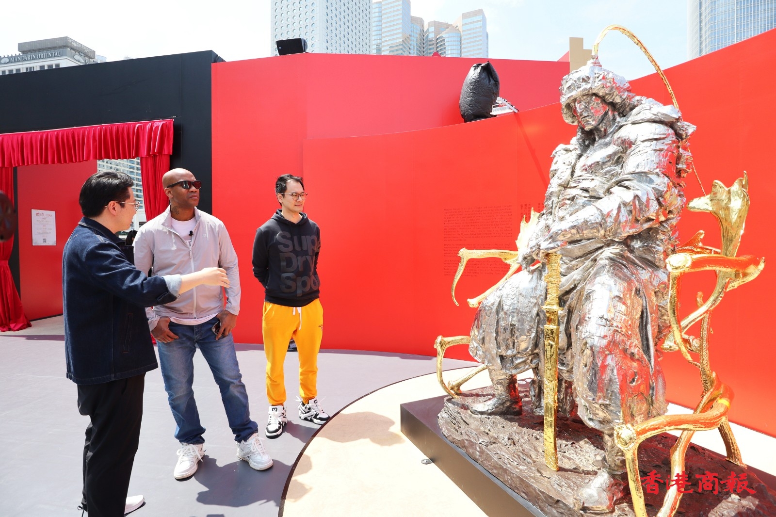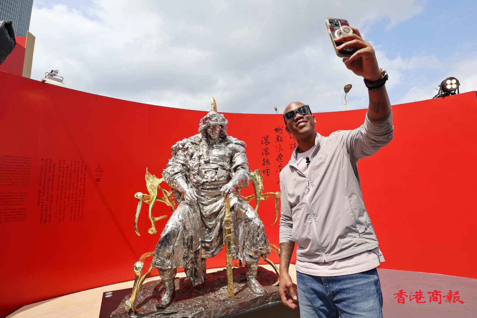 去年11月透過高端人才通行證計劃(「高才通」)來港發展和居住的籃球名宿馬貝利(Stephon Marbury),今午(22日)到中環愛丁堡廣場與策展人方圓明及著名雕塑藝術家任哲,參觀「俠之大者」金庸百年誕辰紀念展覽。差不多每個展區都成為馬貝利的打卡熱點。