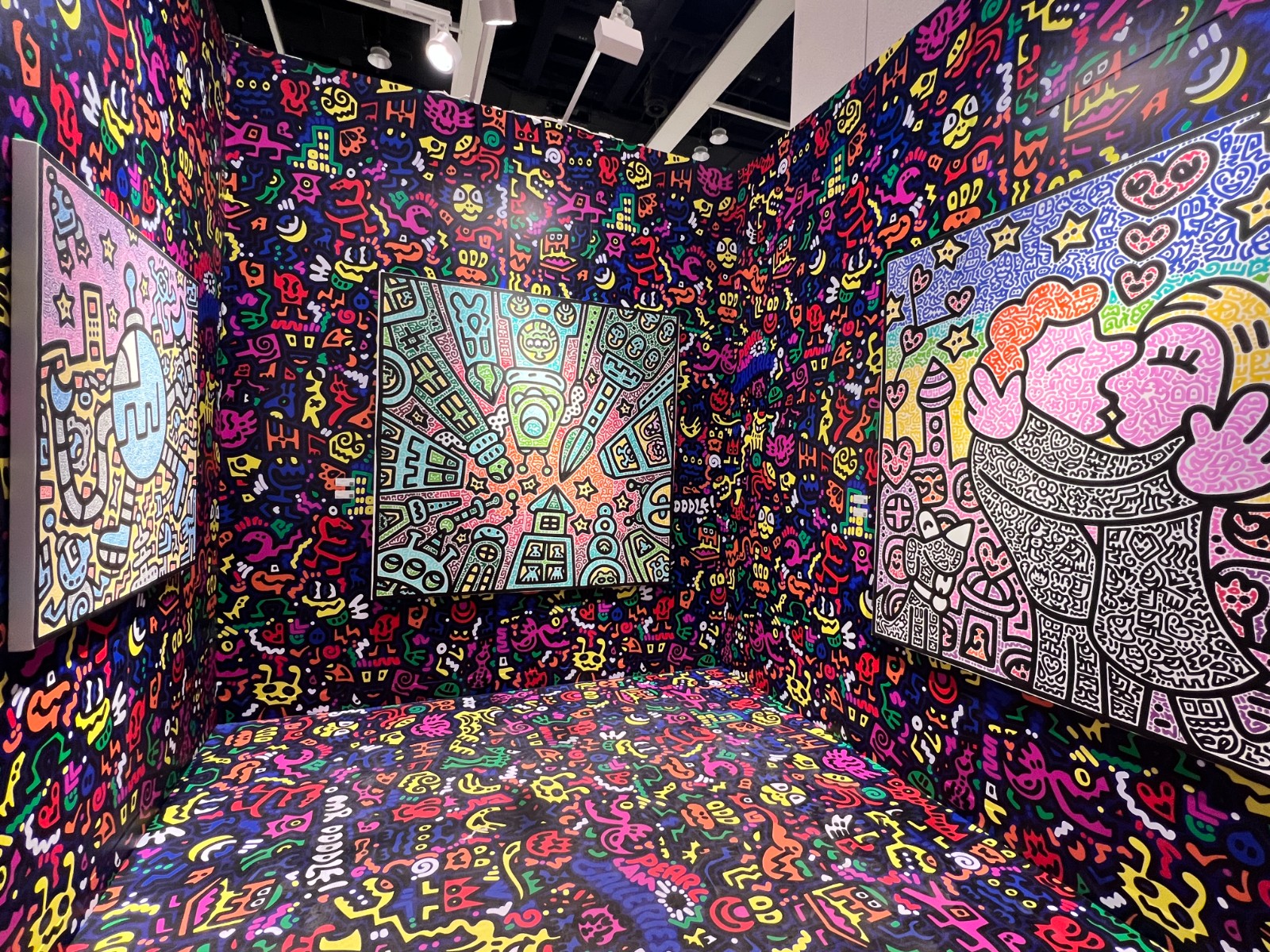 現場藝術品充滿多樣性,今天預展已聚集大量藏家,如本地藝廊「Pearl Lam Galleries」帶來Mr Doodle(塗鴉先生)的新作;韓國釜山藝廊「Johyun Gallery」展出已故韓國「單色畫之父」朴棲甫的系列繪畫作品。同時,亦呈現多件大型裝置,如加賀溫作品《Ukiyo-e》加設榻榻米地板和紙燈籠,具日本建築風格特色;尤安·卡波特作品《島(沃拉吉訥)》及《無盡之海(安魂曲)》組成的巨大裝置,展現如浪濤的曲線,引人深思。 (記者:Janice 圖片:Katherine)