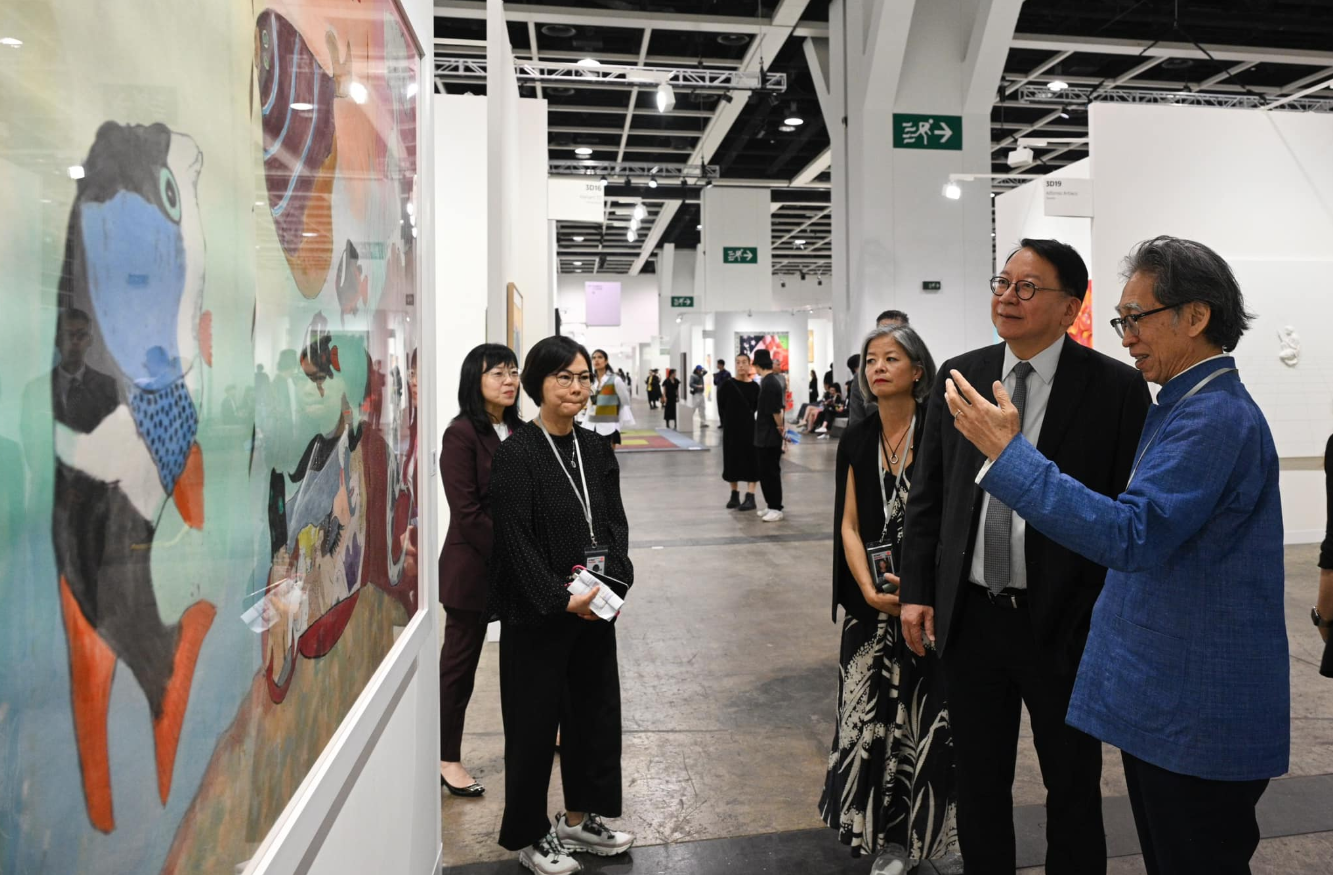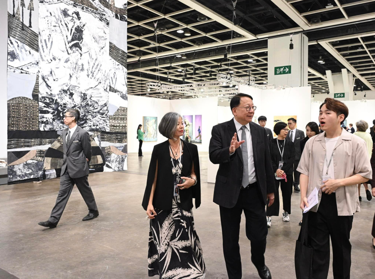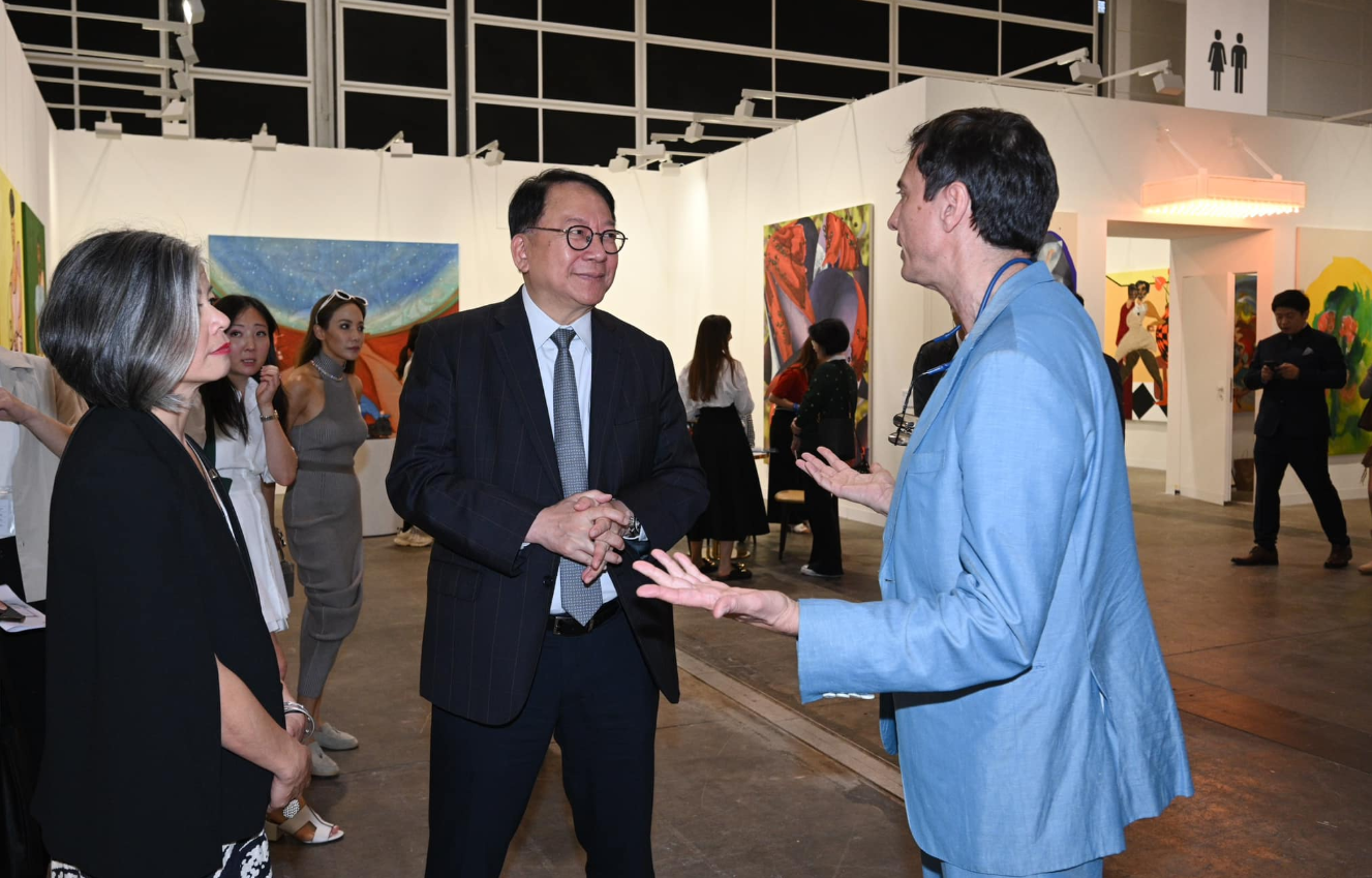 由特區政府精心籌劃的「藝術三月」盛事浪接浪,巴塞爾藝術展香港展會(Art Basel Hong Kong)作為本港最具規模的國際藝術展覽之一,在今個星期載譽歸來。政務司司長陳國基今日(27日)在社交平台發文透露,他昨日已聯同主辦方一同入場先睹為快。