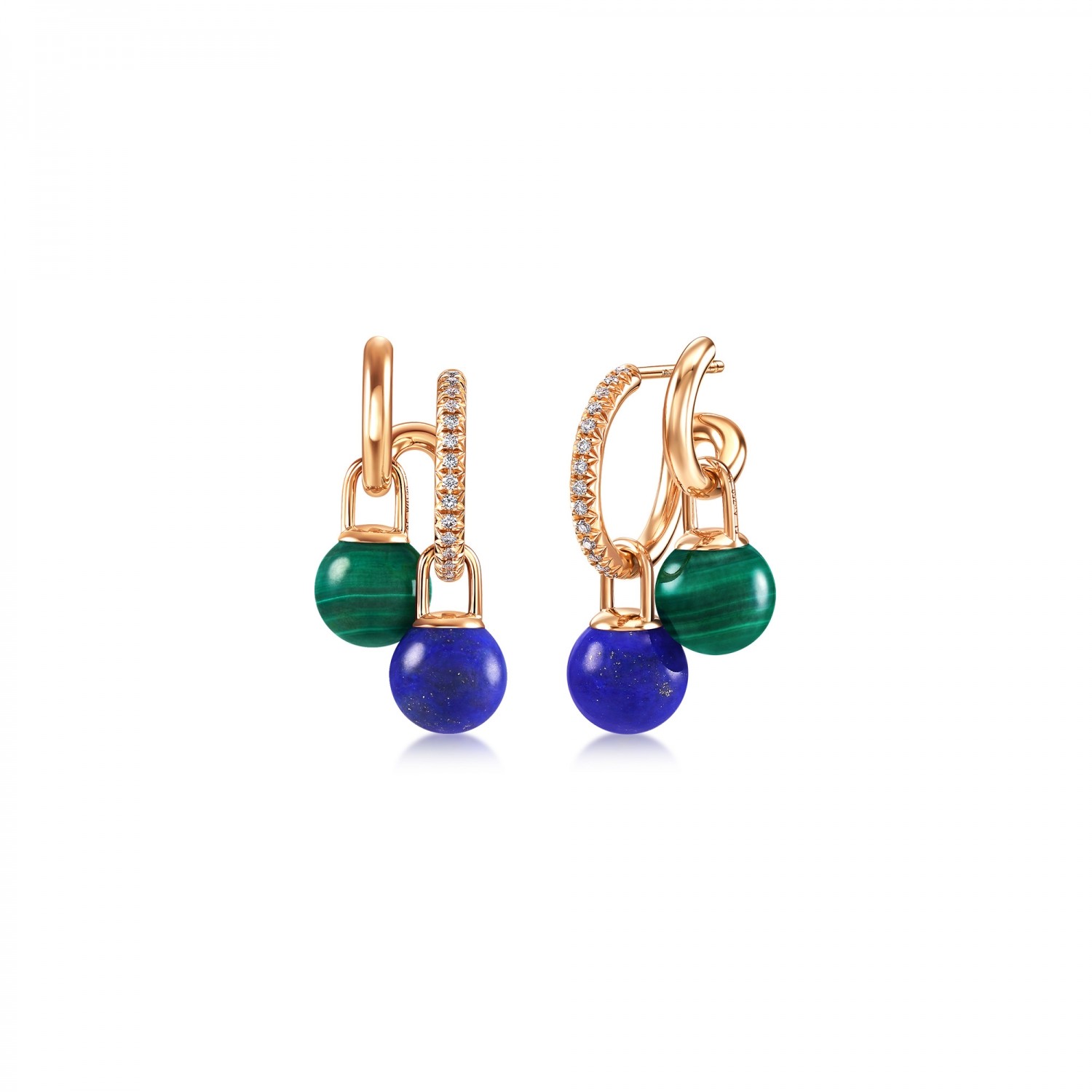 耳環以18K玫瑰金鑽石鎖頭與半寶石球形組合而成,半寶石的活動式設計,令耳環能夠自由擺動,為設計增添佻皮感。