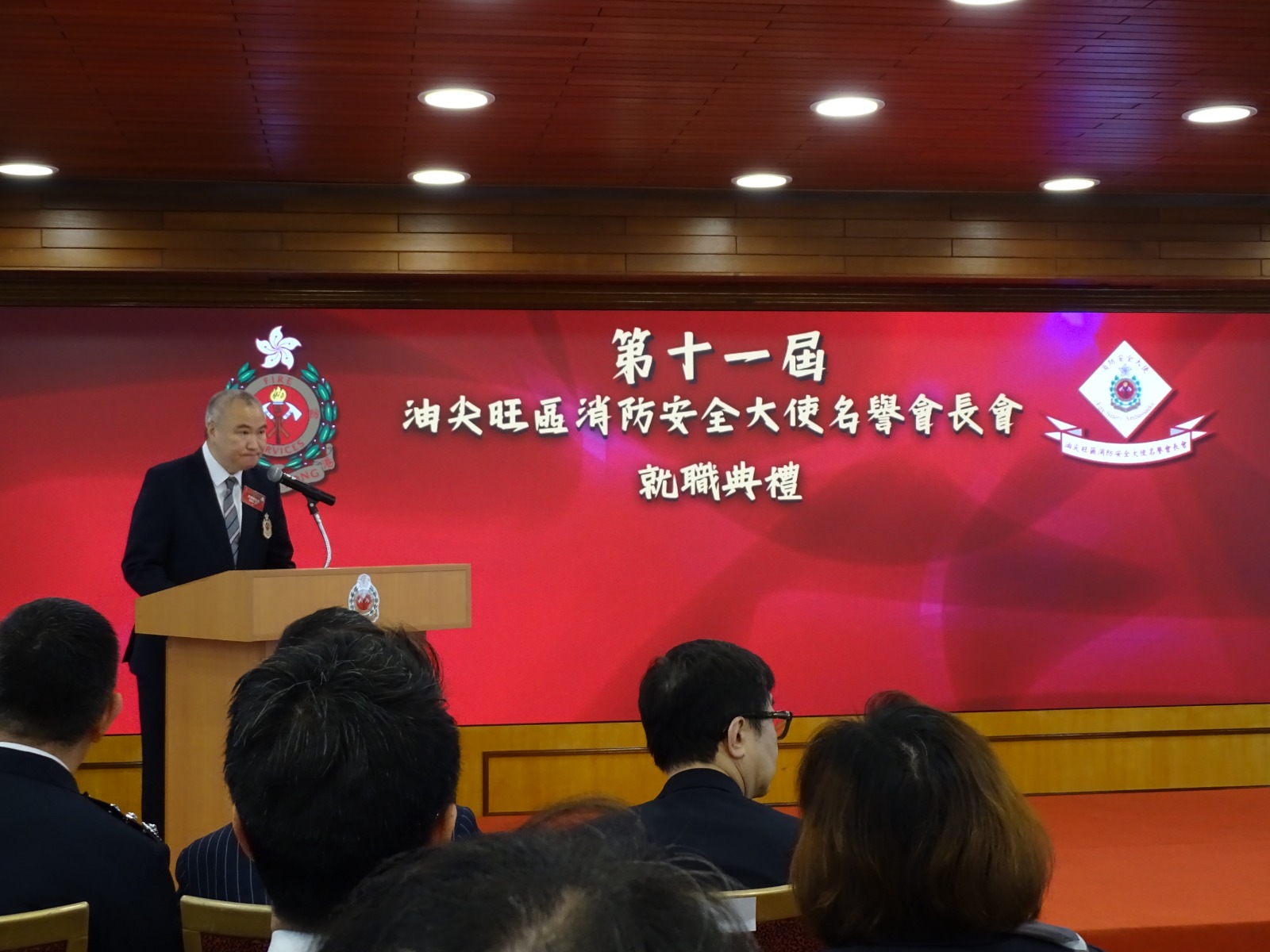 出席典禮的嘉賓包括第十屆油尖旺區消防安全大使名譽會長會主席梁華勝先生BBS JP、消防處分區指揮官(九龍南)林建軍先生、消防處助理處長(九龍)曾永鴻先生FSDSM、油尖旺民政事務專員兼油尖旺區議會主席余健強先生,以及消防處副消防總長(九龍)陳文瀚先生。