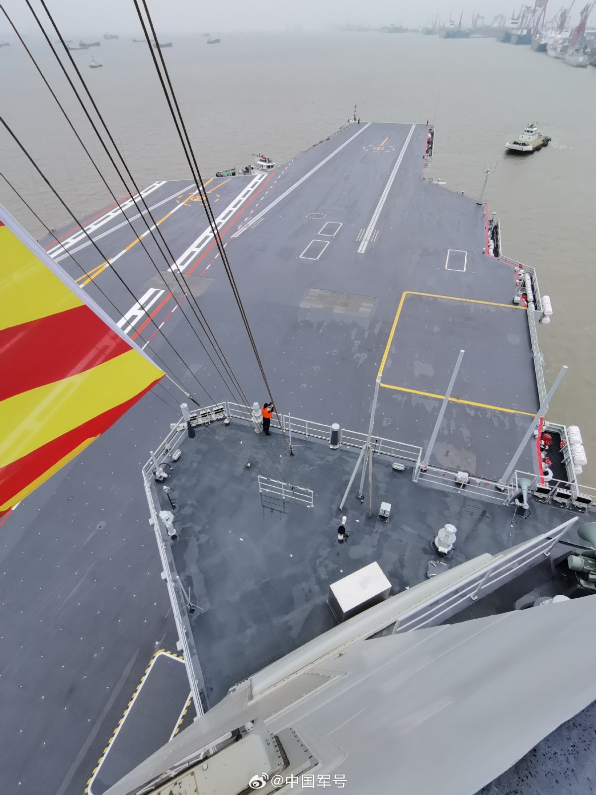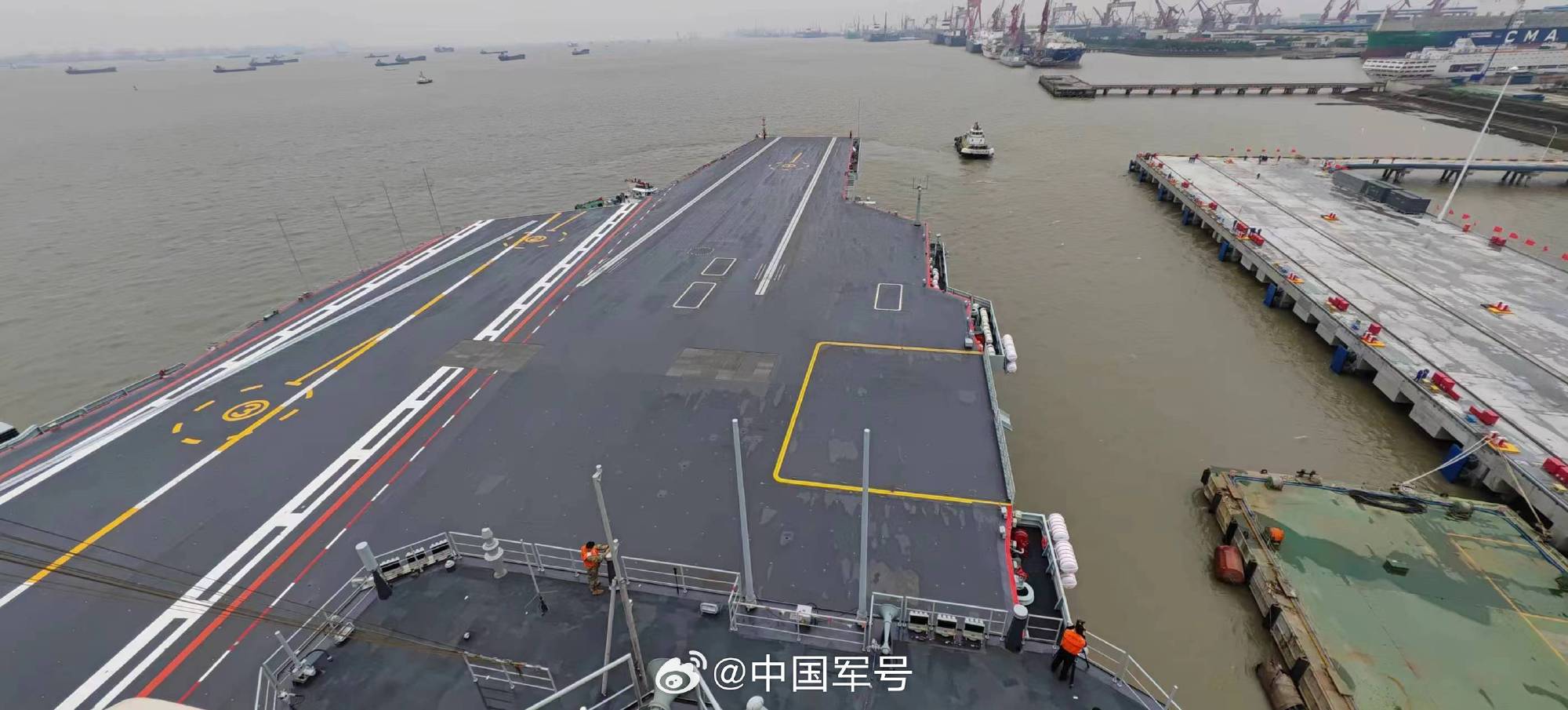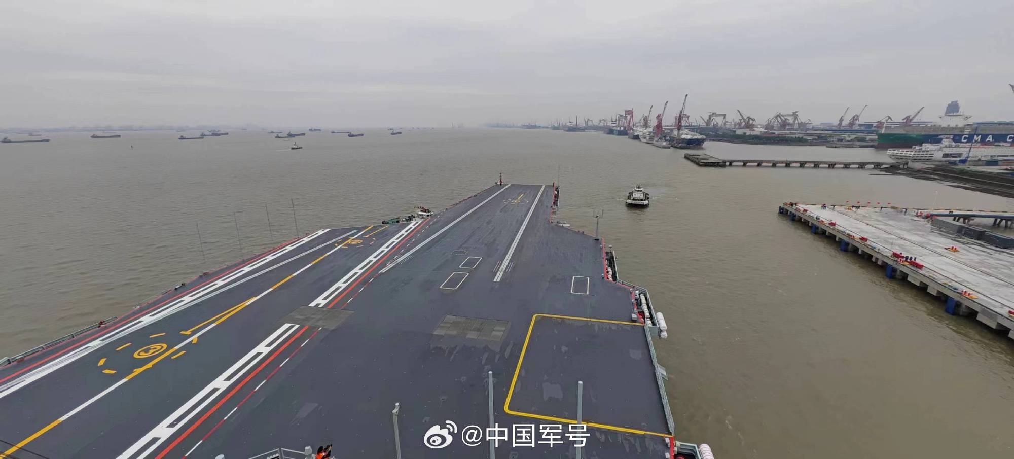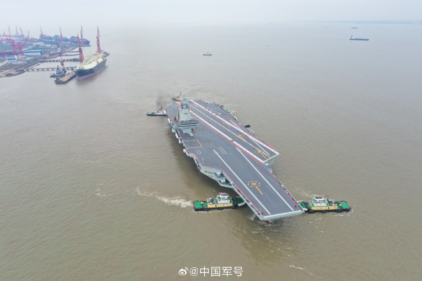 今日(5月1日)早上8時許,我國第三艘航空母艦福建艦從上海江南造船廠碼頭解纜啟航,赴相關海域開展首次航行試驗。