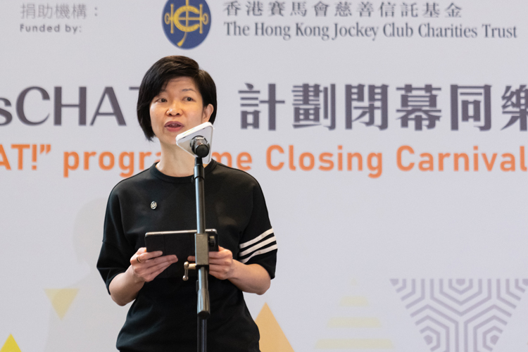 平等機會委員會主席林秀美於閉幕典禮致辭,形容SportsCHAT!計劃在短短6年間讓很多女學生和女性義工接觸到各種不同形式的體育活動,幫助她們培養做運動的興趣及習慣,加上與運動員和企業領袖交流,令女生們從而得到啟發,勇於打破定型框框,建立自信與自我形象,對構建性別平等社會發揮正面效應。
