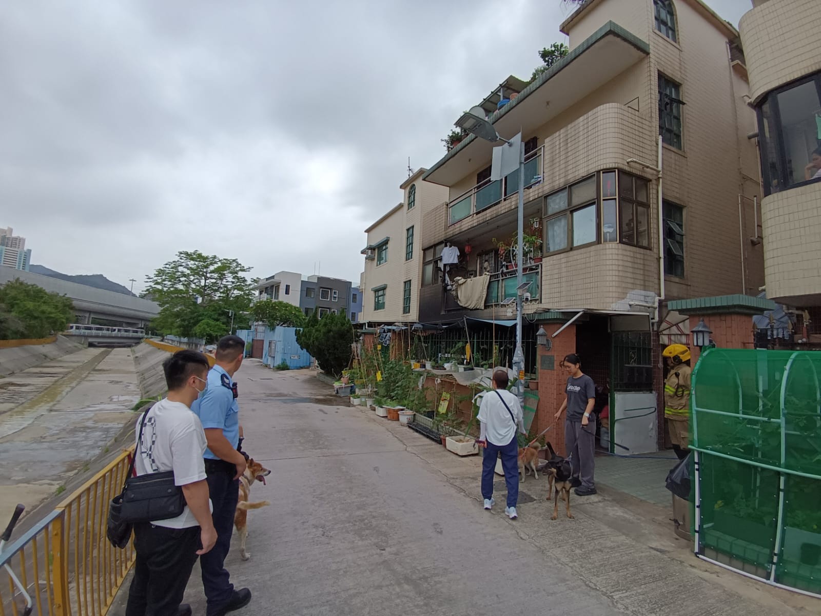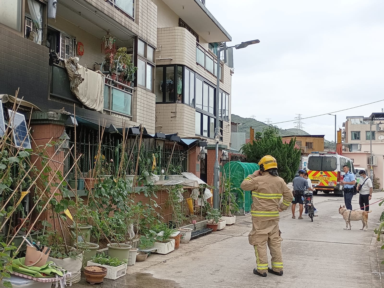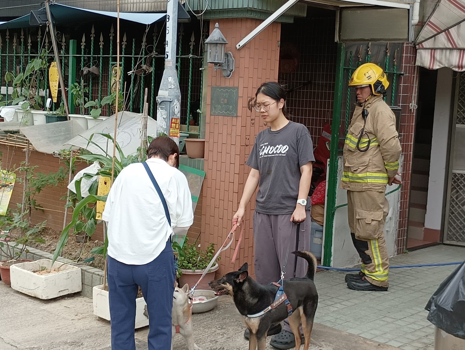 屯門藍地新慶村一村屋單位今日(17日)上午發生火警,無人受傷,消防員接報到場將火救熄,並救出3隻狗。