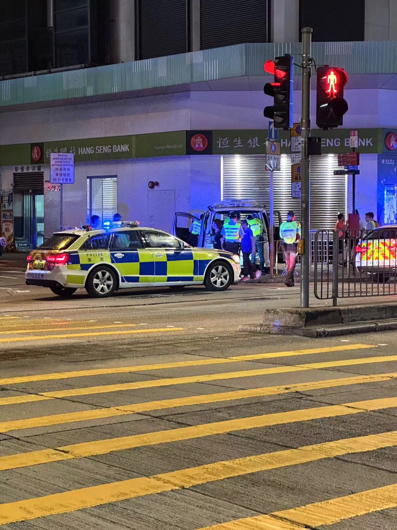 旺角發生交通意外。今日(23日)凌晨零時許,一輛七人車沿彌敦道往尖沙咀方向行駛,駛至近山東街時,懷疑失控剷上行人路,並撞向恒生銀行門口樓梯。期間有兩名途人被撞倒,車上4人亦同告受傷,全部清醒送往醫院治理。據悉,有人報稱閃避切線車,導致意外。(圖/文:李華)