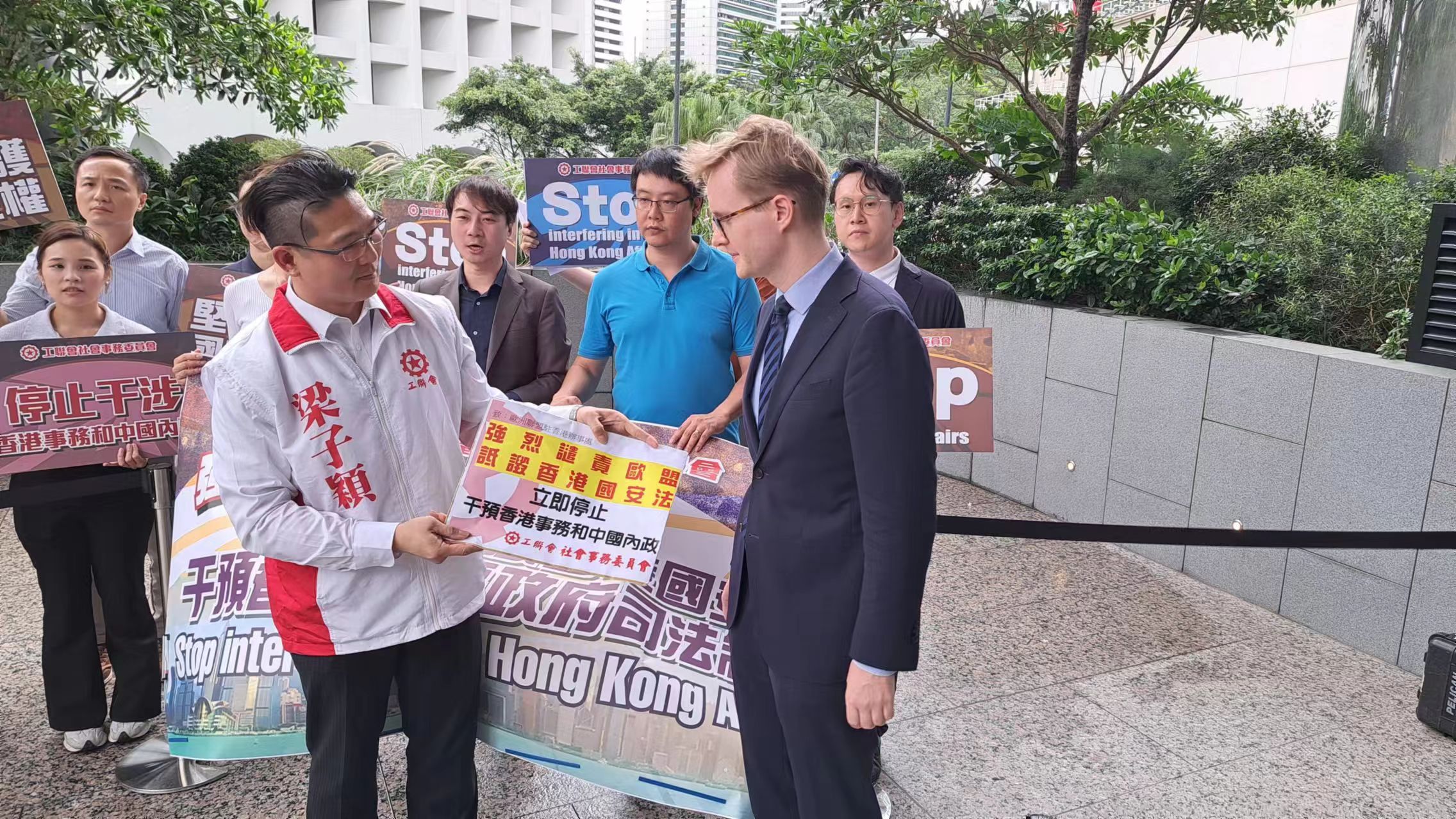 立法會今年3月通過維護國家安全條例,警方根據相關法律進行執法行動是正當司法程序,但歐盟多國蓄意干預香港特區政府司法制度,違背國際關係基本原則並詆毀香港國安法。工聯會社會事務委員會(工聯社委)對此予以強烈譴責,並於今午(31日)前往位於中環的歐洲聯盟駐香港辦事處進行抗議及遞交信件,歐盟派代表接收。
