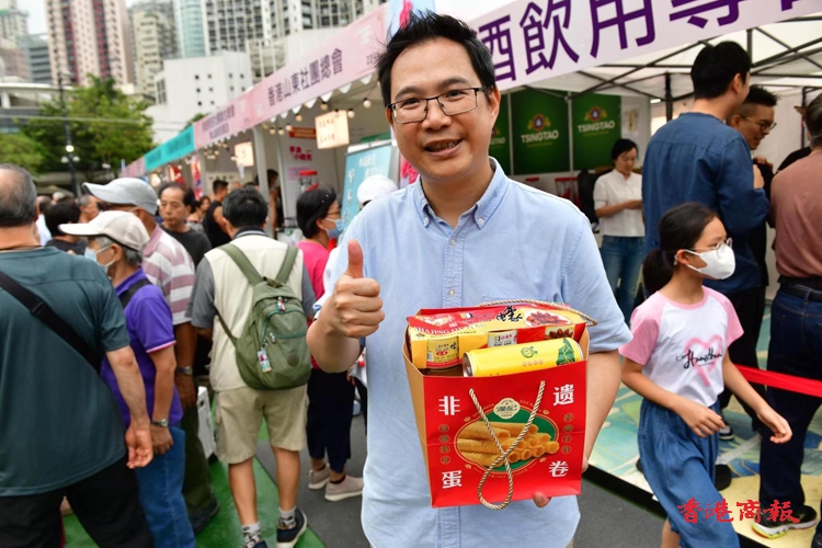 正在維園舉行的第二屆同鄉社團家鄉市集嘉年華展期踏入第四天,儘管今日(4日) 天色一般,但仍然無阻市民一家大細入場遊覽和掃貨,不少人拿着「一袋二袋」戰利品,滿載而歸,當中包括立法會議員楊永杰在內。