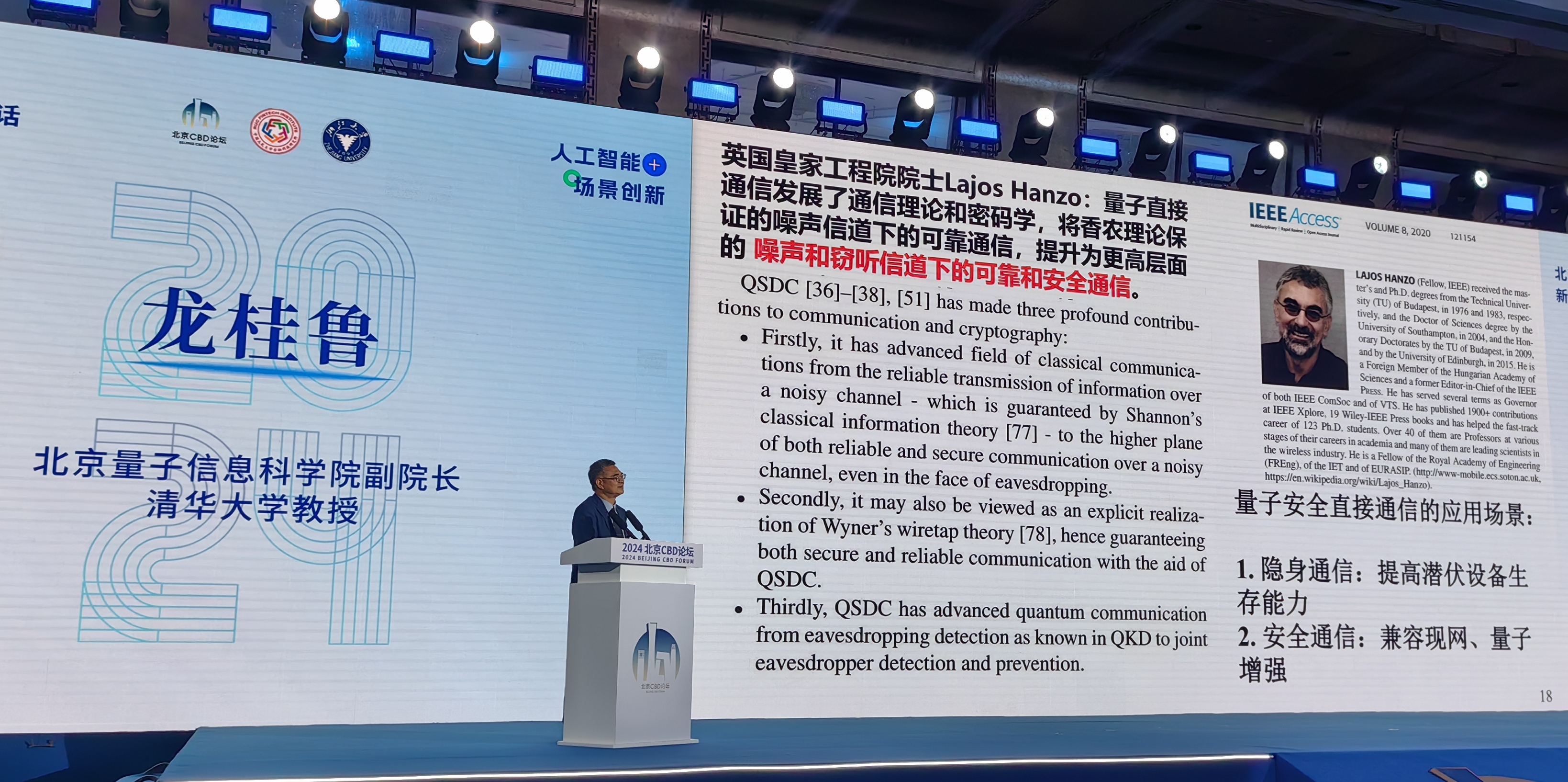 北京CBD新質生產力夜話暨首屆北京CBD「人工智能+」場景創新大會近日舉行。龍桂魯以「量子信息與新質生產力」為主題演講時介紹。他表示,第一次量子革命利用了量子效應的間接效應,第二次量子革命則主動探索並直接利用量子態和量子效應進行計算、測量和通信。量子科技涵蓋材料、計算、通信和測量四大領域,其中後三者合稱量子信息。量子計算可以利用量子糾纏等特性大大加速計算,量子通信是通過移動量子態實現高度安全的通信,量子精密測量則利用量子態實現更精確、靈敏的探測。