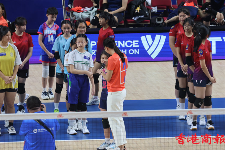 國家女排完成公開練習後,全隊球員化身成為客席教練,向一眾本地中、小學的約70名小球員傳授排球技巧,女排隊員先與小球員輪流進行上手及下手傳球、接扣球練習,當中朱婷更與小朋友擊掌以示鼓勵。