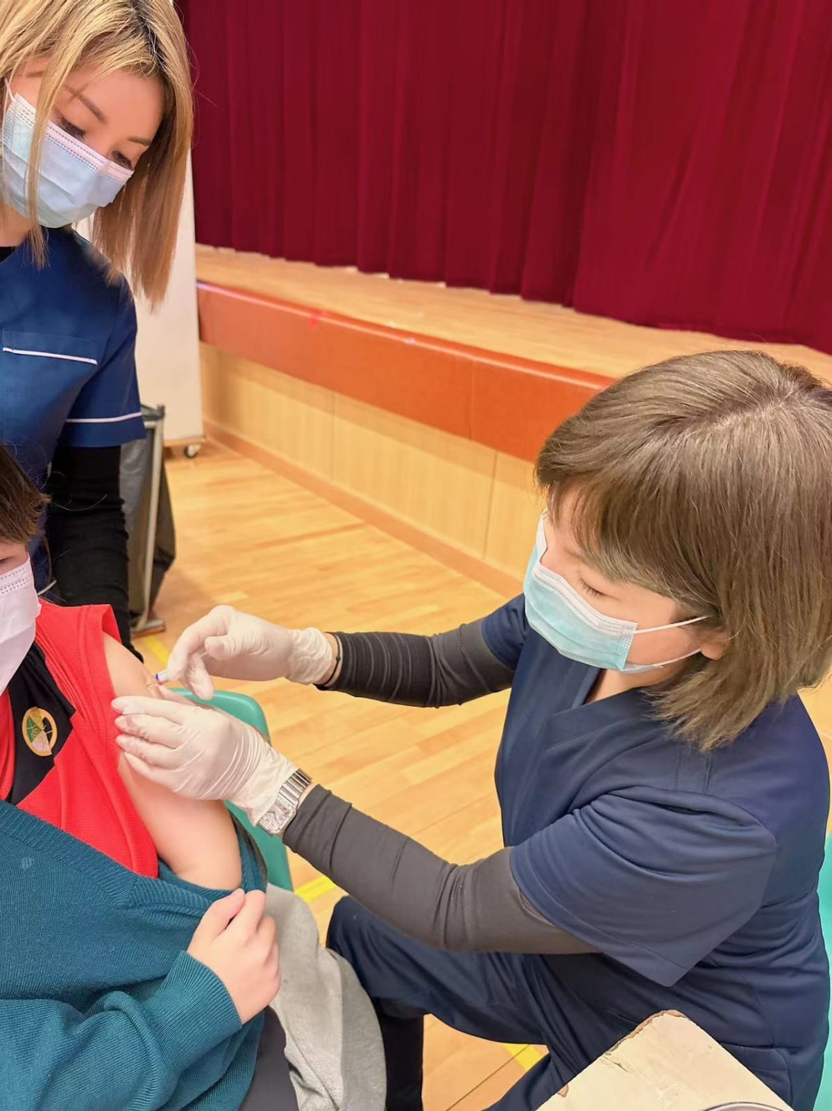 香港精準醫學集團團隊到學校幫助學生接種流感疫苗。