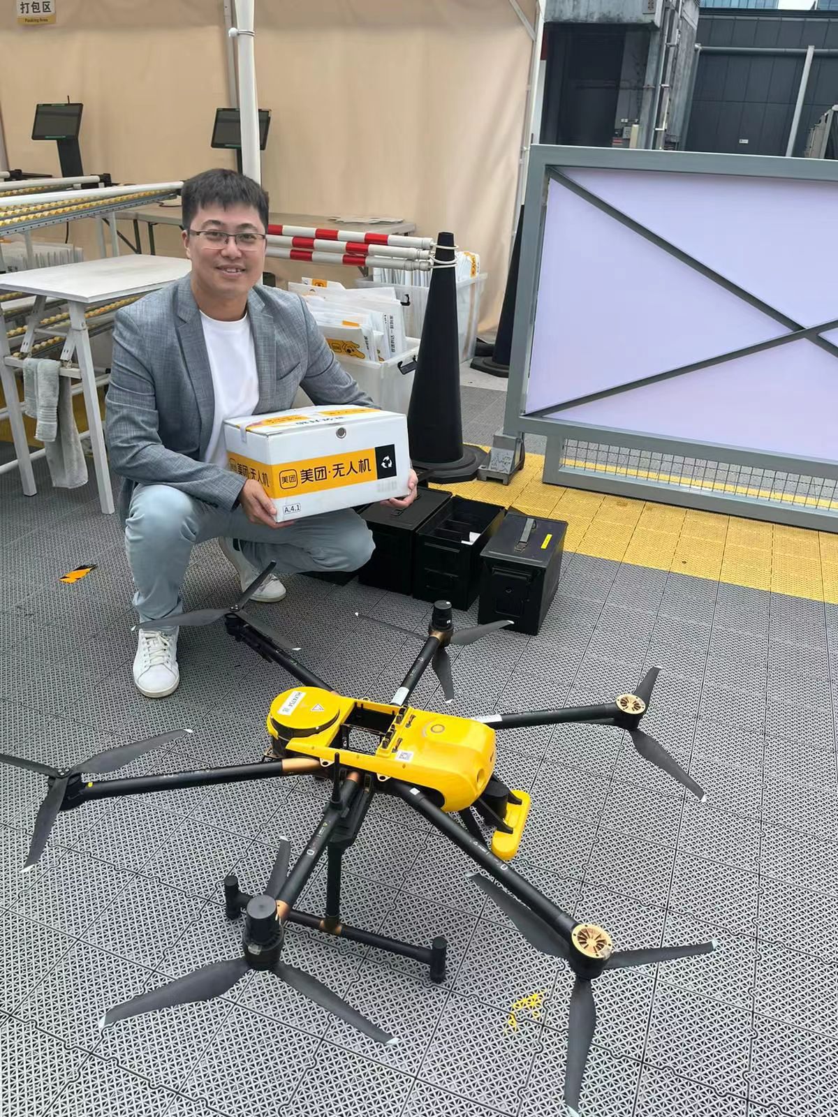 顏汶羽同觀塘工商聯先到訪美團,了解到美團由2021年起提供無人機外賣送餐服務,至今在深圳、上海等城市有11個商圈共28條航線,累計完成超過25萬張訂單。配送地點可覆蓋外賣車手難以進入的地方,例如景區式或者不對外開的學校等。有關注無人機的出現會否令外賣員失業,集團表示送餐仍以外賣員配送為主,另外車手可選擇轉職為無人機「地勤」。