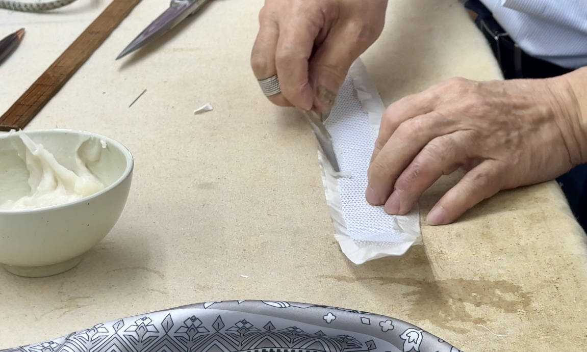 現用的製衣工具已經難在市場上買到,如用來增加布料硬度的漿糊,都是由殷師傅親自製作。