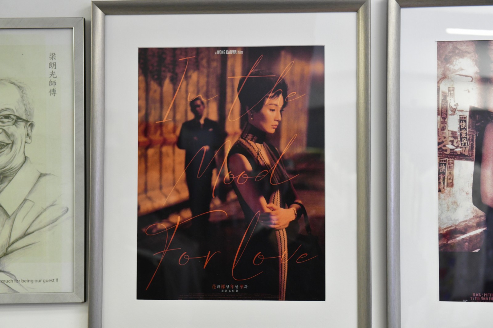 梁朗光工作室內掛着《花樣年華》劇照及他與張曼玉的合照。梁師傅透露他與張曼玉一直保持聯絡。(崔俊良攝)