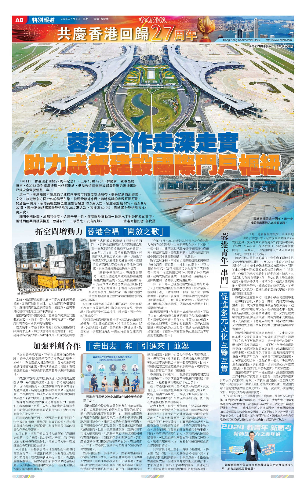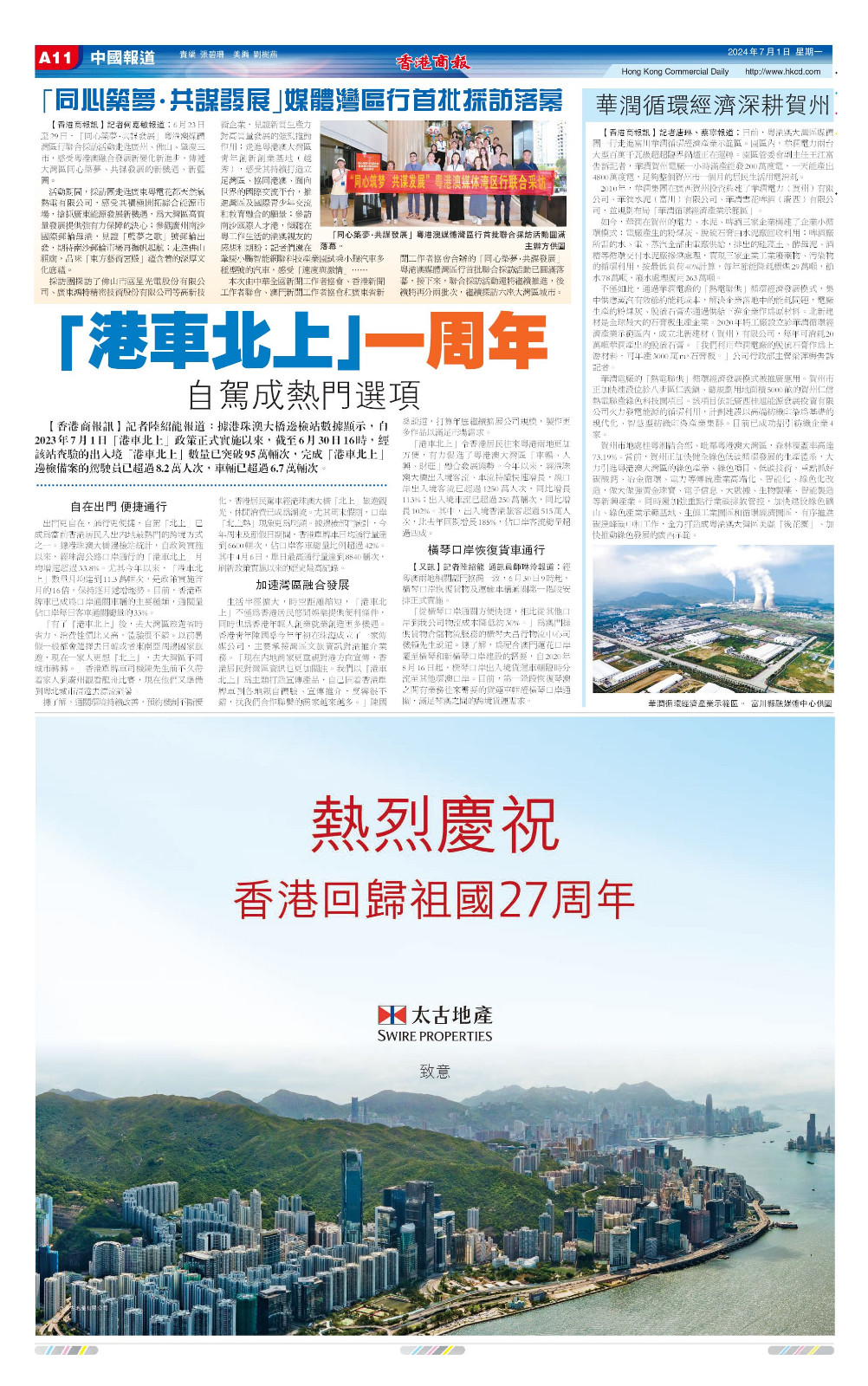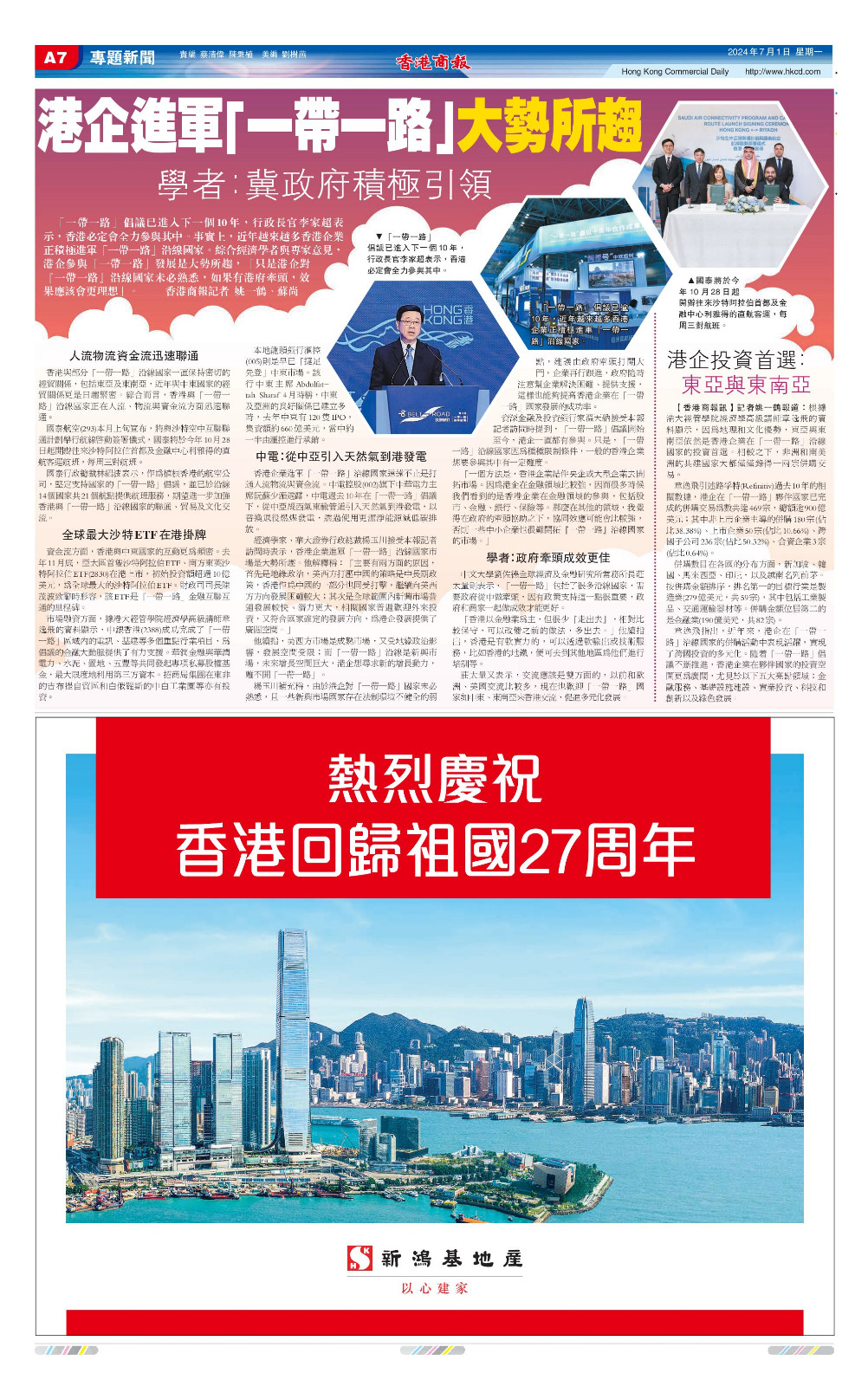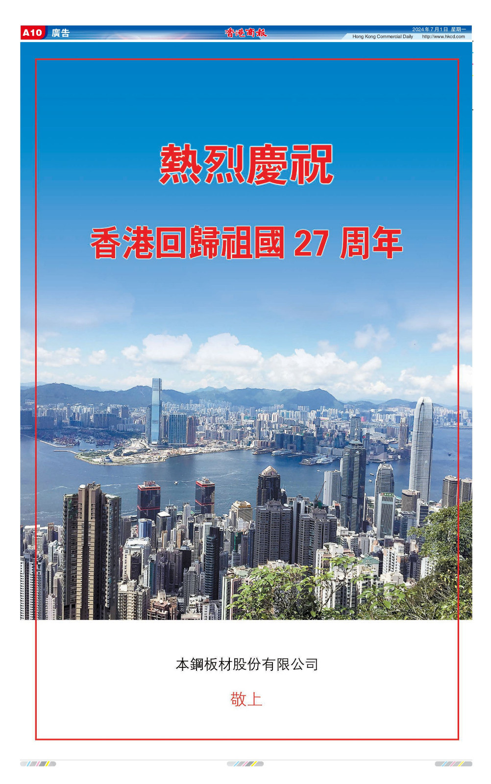另外值得一提的是,香港商報在7月1日當天推出數十個版面,來自香港各行各業的企業、社團紛紛登報,慶祝香港回歸祖國27周年。