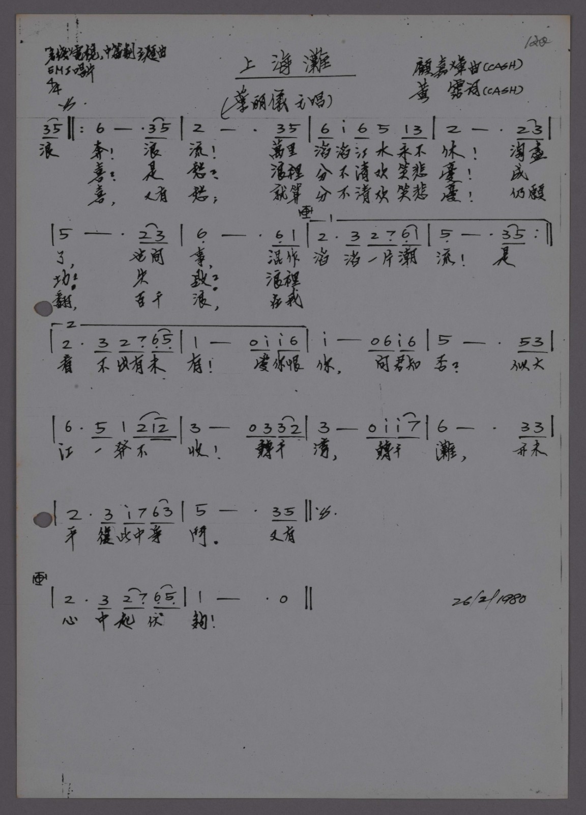 《柳毅傳書》劇本、歌詞手稿,1984年。