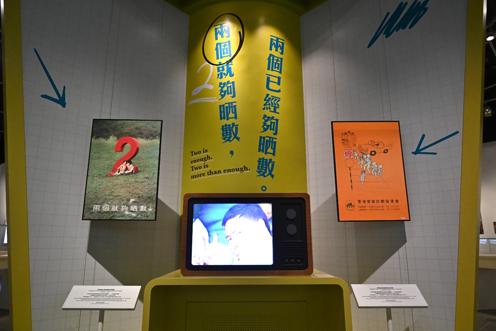 香港家庭計劃指導會宣傳海報,1970年代。家計會《兩個夠晒數》宣傳廣告歌曲由黃霑作曲及填詞,仙杜拉主唱,歌曲膾炙人口,陪伴一代香港人成長。