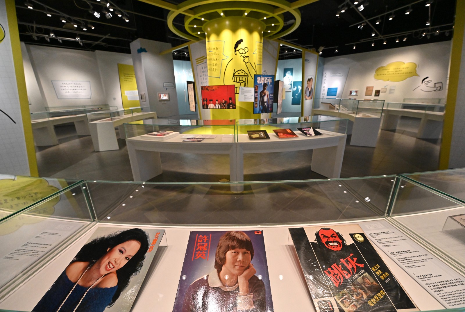 黃霑作為一代鬼才,不少經典歌曲出自他的手筆,展品包括多張珍貴的唱片封套,如收錄了由黃霑填詞、其音樂創作好拍檔顧嘉煇作曲、港人耳熟能詳的《獅子山下》;由黃霑為經典兒歌填上粵語歌詞的《世界真細小》等。其中同樣是「煇黃」組合作品的《上海灘》電視劇主題曲歌詞手稿由黃霑家人借出,據陳館長介紹,這首家喻戶曉的歌曲是兩人透過電話溝通合作:「黃霑創作《上海灘》時非常倉促,在電話中,顧嘉煇哼音樂,黃霑筆錄填詞,再唱給顧嘉煇聽。黃霑曾提過,寫歌時填了開首的『浪奔、浪流』後花了二十分鐘就填好詞,事後他說自己從未去過黃浦江,『浪奔、浪流』是他自己的想像,反映了黃霑的文筆、中文造詣之高。」陳館長並提醒,現時展覽展示的為複製品,原稿在博物館另一展覽「瞧潮香港 60+」中展示。