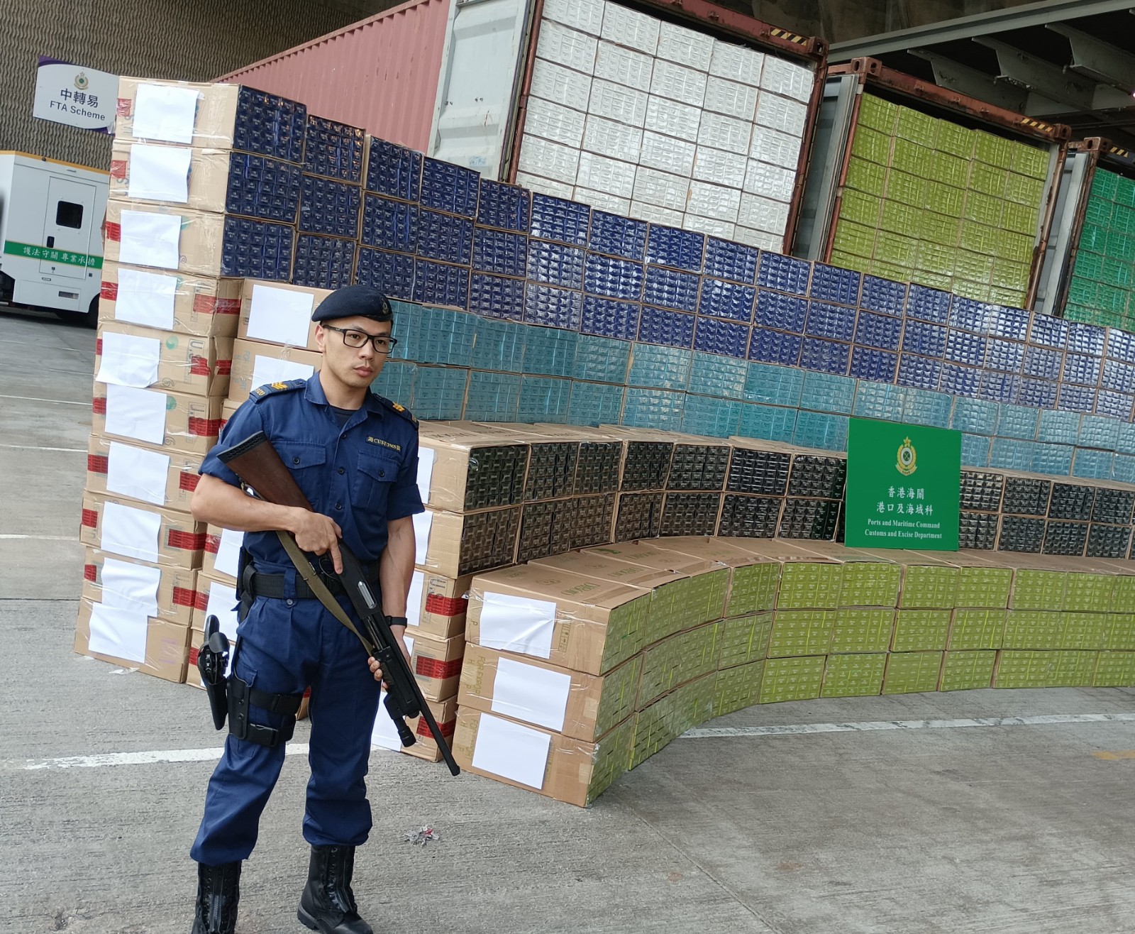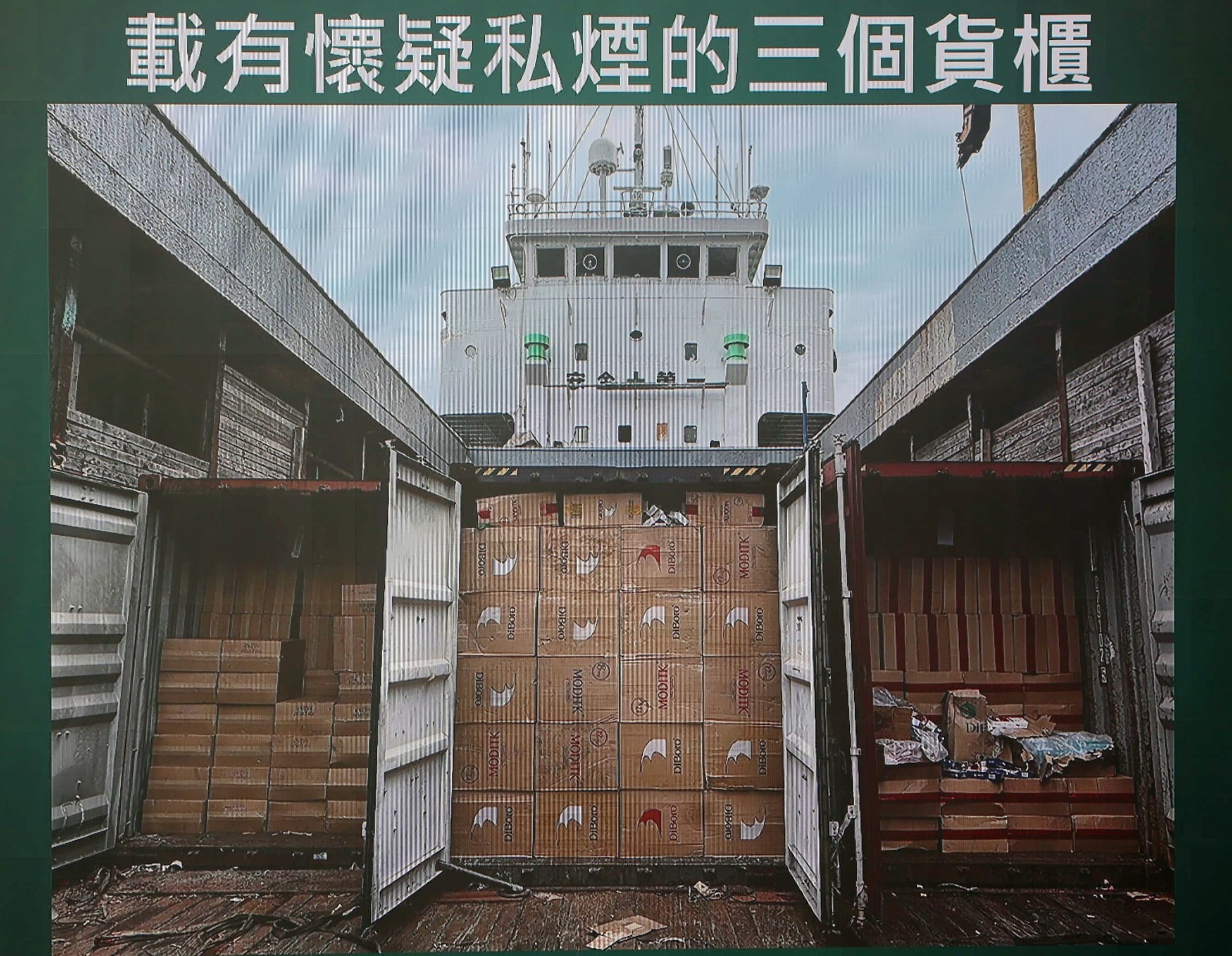 海關稅收罪案調查科稅收調查第一組高級調查主任林威杰表示,人員發現船上只有3個貨櫃,並無其他貨物,3個貨櫃分別載有私煙,合共3040萬支,總值1.4億元,應課稅值1億元。在第一個貨櫃中發現的私煙傳為白牌煙,佔總數約三成,其餘兩個貨櫃是傳統的私煙。船長稍後將被落案起訴「輸入未列倉單貨物」罪,案件會在明日(26日)早上在東區裁判法院提堂。