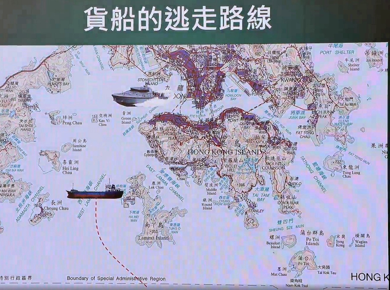 前晚(23日)人員留意到一艘目標船隻,分析資料後發現該船並沒有辦理抵港的手續,遂展開部署,至昨日凌晨目標船隻進入香港水域,人員見時機成熟,派出兩艘高速截擊艇追截,行動期間該船突然以180度航向改變,往香港以南水界逃走,海關船隻加速追截,至南丫島對開海域時,對方仍沒有依照指示停航,海關船隻最後將其截停,人員登船搜查,船長無法提供載貨倉單,亦無法說出貨櫃資料詳情,引起人員懷疑,打開其中一個貨櫃發現藏有大量懷疑未完稅香煙,隨即拘捕包括船長在內共7名船員,他們全為緬甸籍人士。