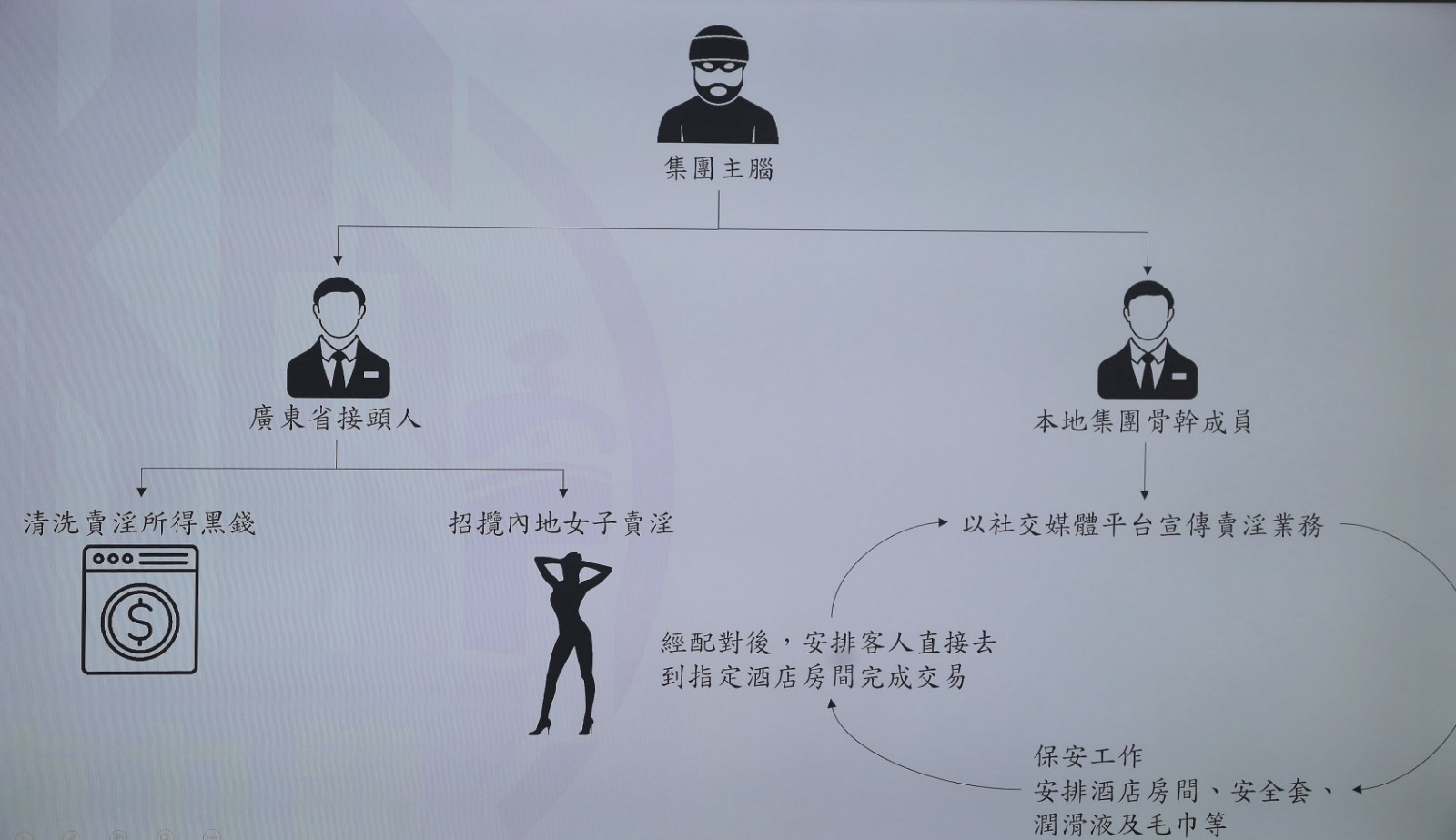 警方相信行動已成功瓦解該賣淫集團,強調控制他人賣淫、依靠他人賣淫的收入為生屬嚴重罪行,根據香港法例第200章刑事罪行條例,一經定罪,分別可被判處監禁7至14年。(記者 區天海)