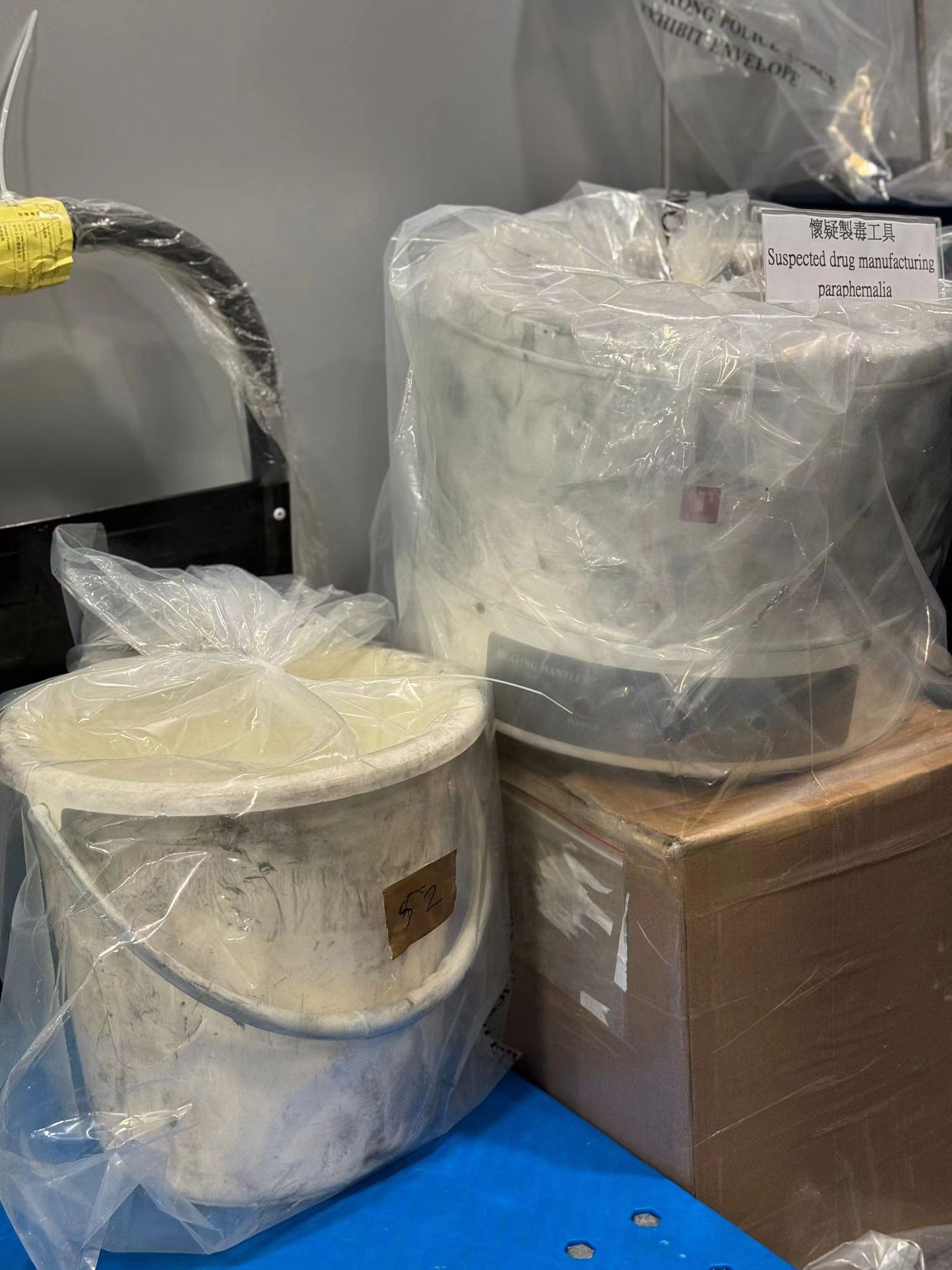 警方重申,製毒和販毒屬嚴重罪行,根據香港法例第134 章《危險藥物條例》, 一經定罪, 最高刑罰終生監禁和罰款500萬元,市民切勿以身試法。(記者區天海)