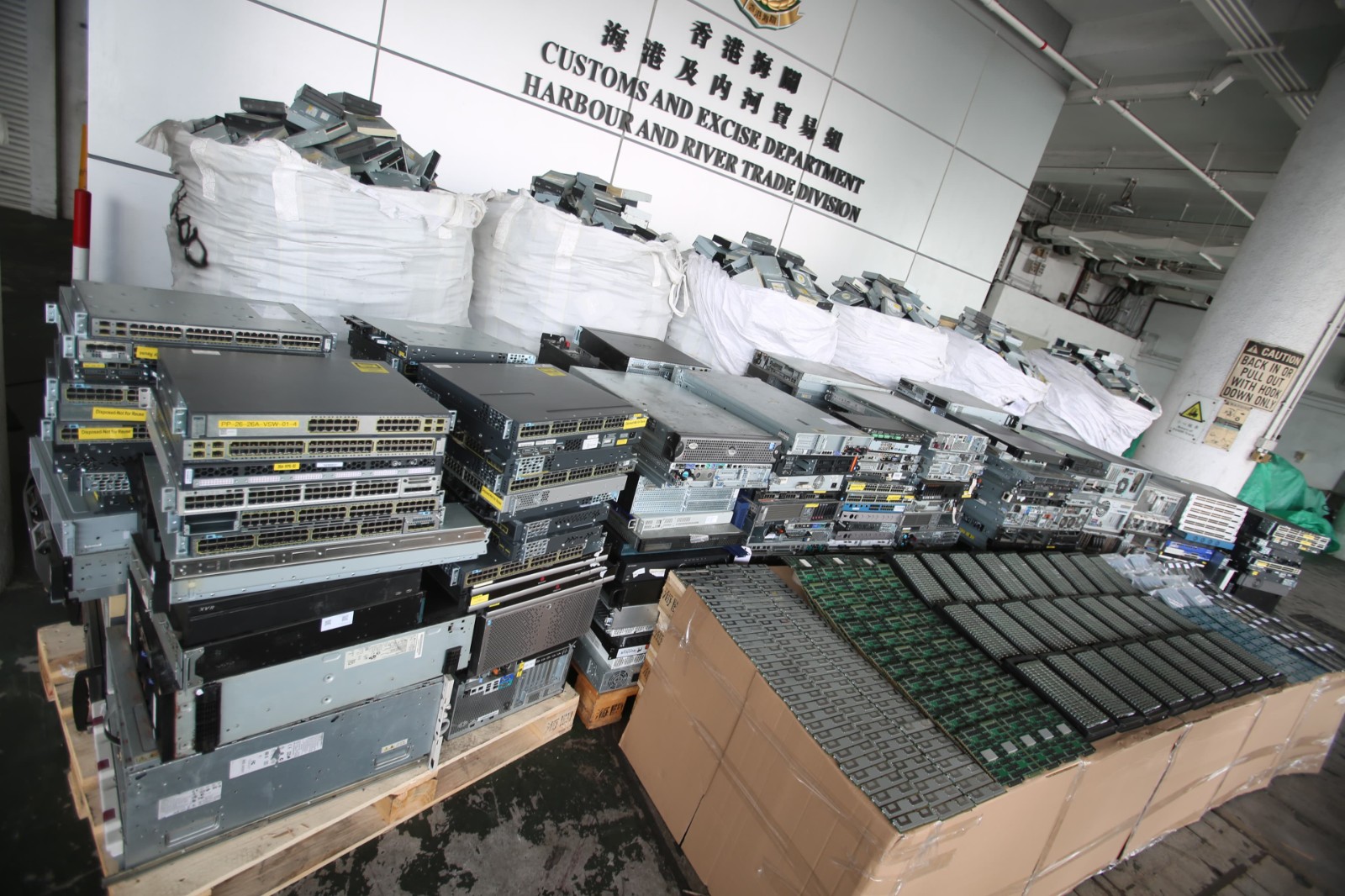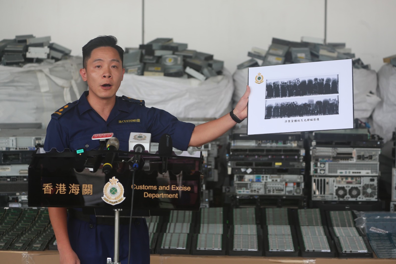 海關有組織罪案調查科特別調查第一組調查主任林駿興表示,人員在兩個貨櫃中檢獲大批電腦伺服器、記憶體和電子零件,市值約5000萬元。跟進調查發現,付貨人是海外人士,登記公司亦在海外,現正調查在港是否有接貨人士,案件仍然調查當中,不排除有人被捕。(記者 區天海)