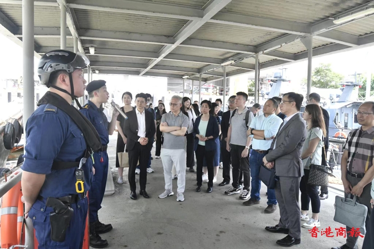 頂圖圖説:葵青區議會一眾區議員今早前往昂船洲海關船隊基地,參觀香港海關設施。(記者 蔡啟文攝)